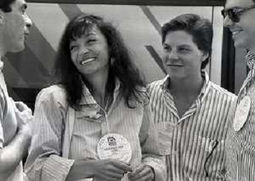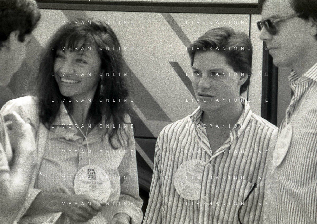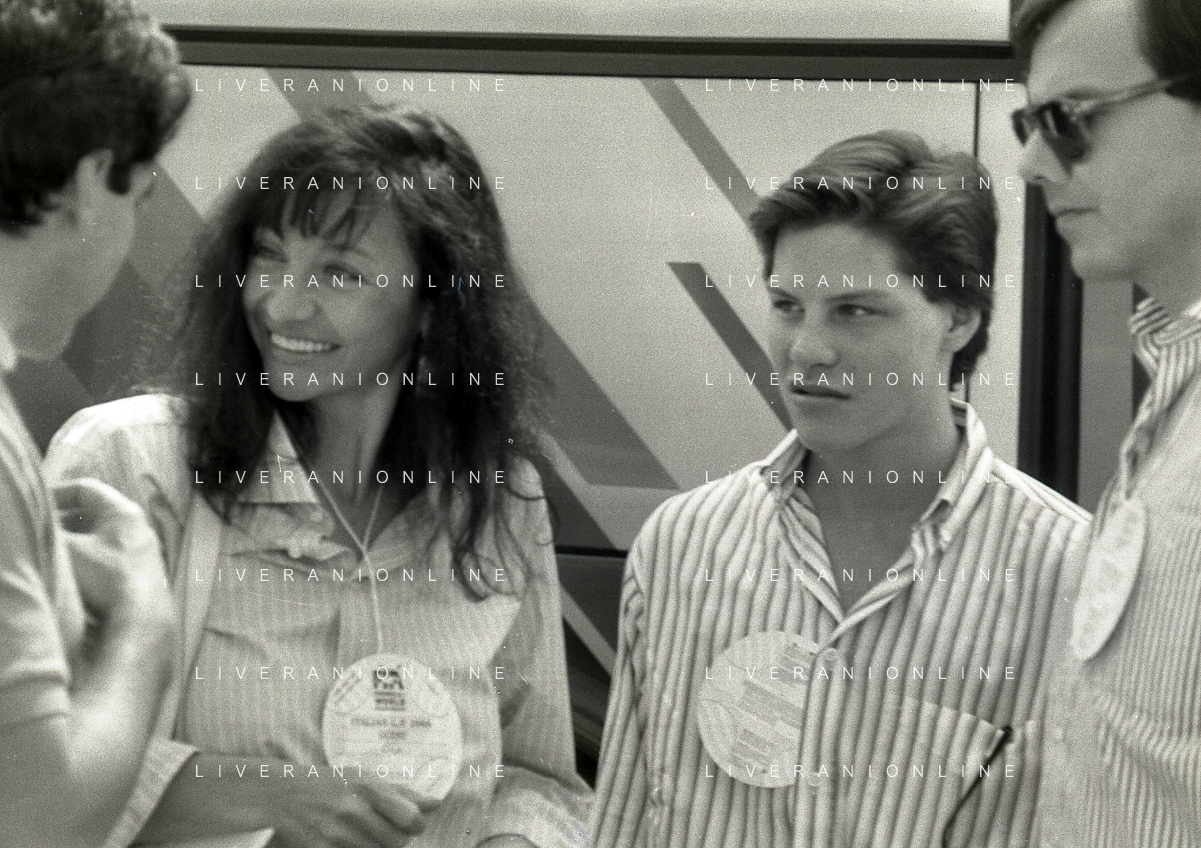 DIAP-RETROSPETTIVA JACQUES VILLENEUVE PILOTA F1 NELLA FOTO JACQUES VILLENEUVE NELL''ANNO 1989 CON LA GIORNALISTA SILVANA GIACOBINI AG CONTROLUCE-AG ALDO LIVERANI SAS