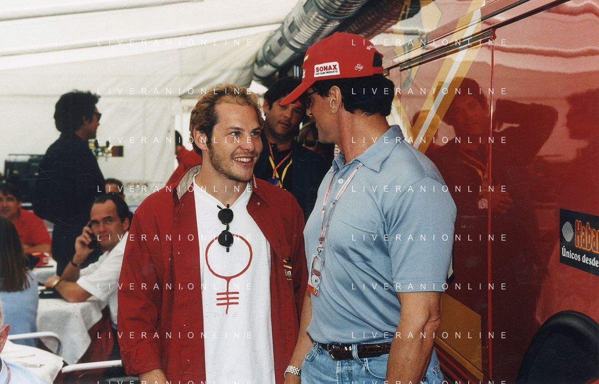 ST-RETROSPETTIVA JACQUES VILLENEUVE PILOTA F1 NELLA FOTO JACQUES VILLENEUVE NELL'ANNO 1998 CON SILVESTER STALLONE AG CONTROLUCE-AG ALDO LIVERANI SAS