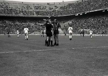 16-04-1972 MILANO-CAMPIONATO DI CALCIO SERIE A INTER FIORENTINA 1-1 NELLA FOTO MARIO CORSO E L'ARBITRO FRANCESCON AG ALDO LIVERANI SAS