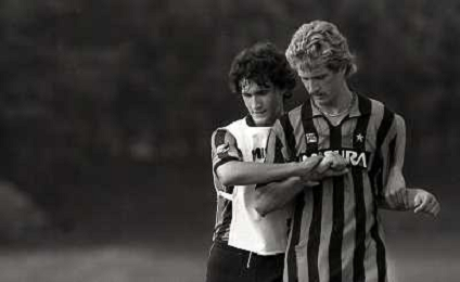 APPIANO GENTILE ALLENAMENTO INTER 1983 NELLA FOTO EVARISTO BECCALOSSI E HANSI MULLER AG ALDO LIVERANI SAS