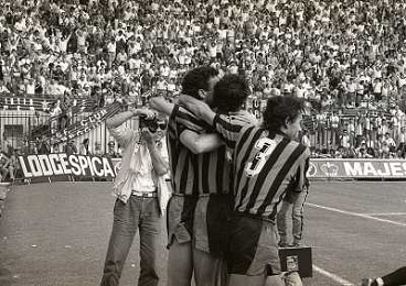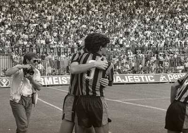 11-09-1983 MILANO- CAMPIONATO DI CALCIO SERIE A INTER SAMPDORIA 1-2 NELLA FOTO ABBRACCI GIOCATORI INTER AG ALDO LIVERANI SAS