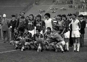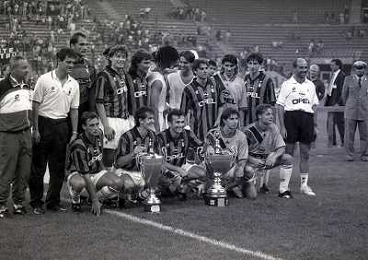 17-08-1994 MILANO TROFEO BERLUSCONI MILAN BAYERN MONACO 1-0 NELLA FOTO LA SQUADRA DEL MILAN CON IL TROFEO AG ALDO LIVERANI SAS