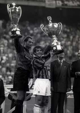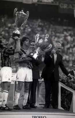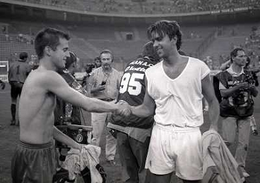 17-08-1994 MILANO TROFEO BERLUSCONI MILAN BAYERN MONACO 1-0 NELLA FOTO Michael Sternkopf CON GIANLUIGI LENTINI AG ALDO LIVERANI SAS