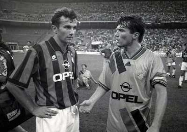 17-08-1994 MILANO TROFEO BERLUSCONI MILAN BAYERN MONACO 1-0 NELLA FOTO MARCO SIMONE E DEJAN SAVICEVIC AG ALDO LIVERANI SAS