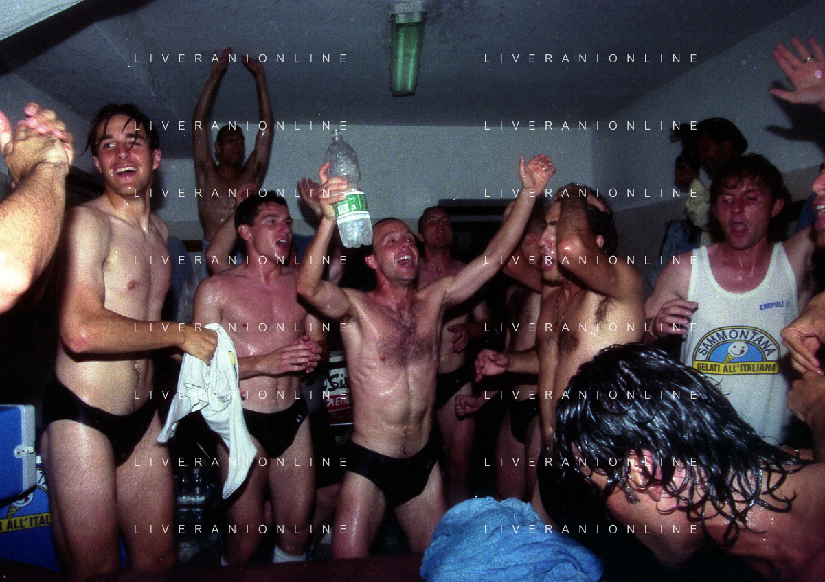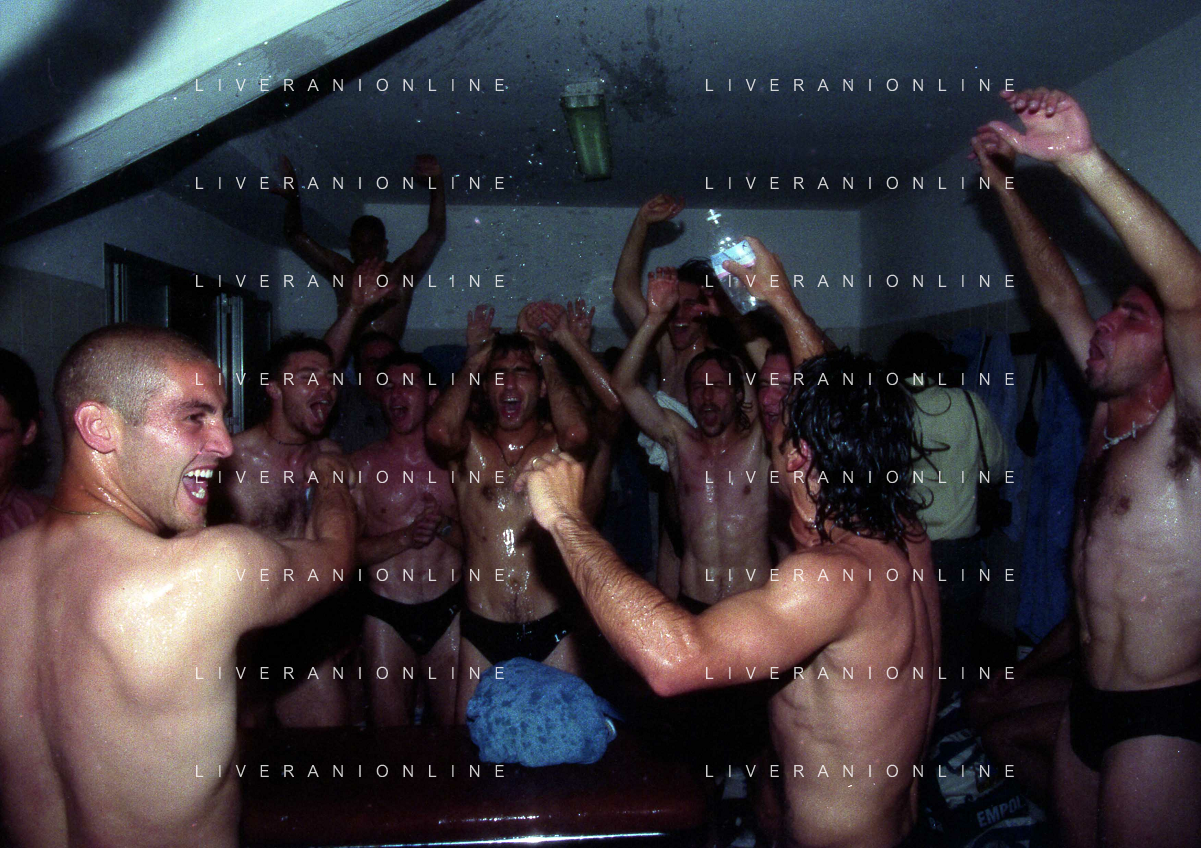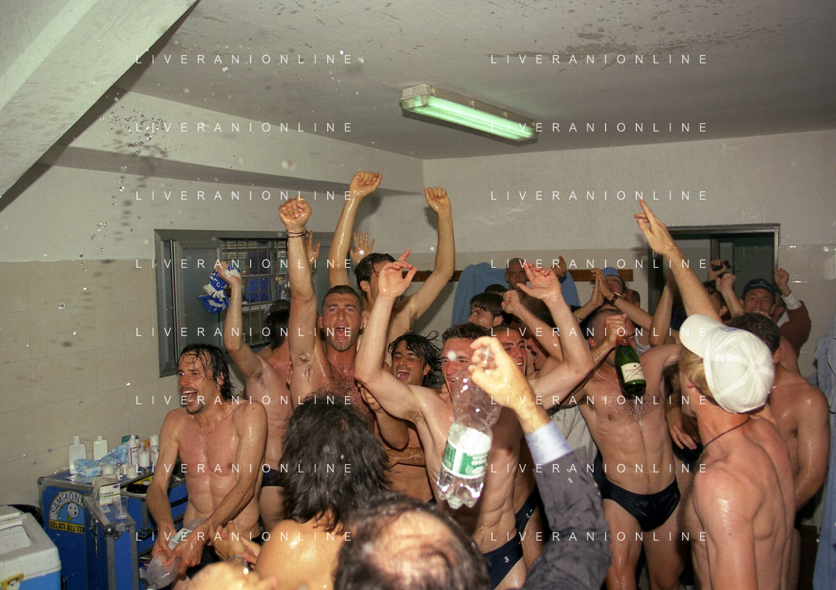 22-06-1997 CREMONA CAMPIONATO DI CALCIO SERIE B CREMONESE EMPOLI 0-1 PROMOSSO EMPOLI CALCIO IN SERIE A NELLA FOTO I GIOCATORI DELL'EMPOLI FESTEGGIANO LA PROMOZIONE IN SERIE A AG ALDO LIVERANI SAS