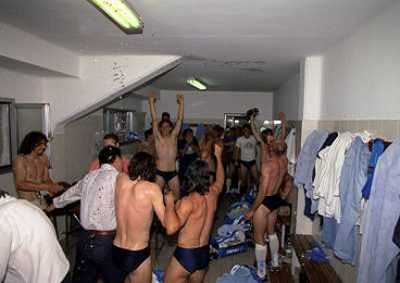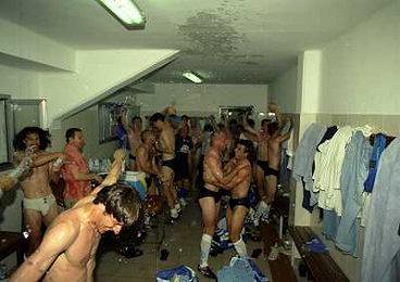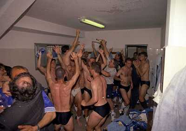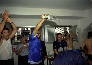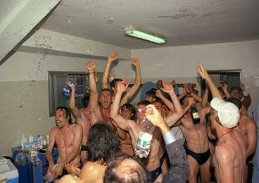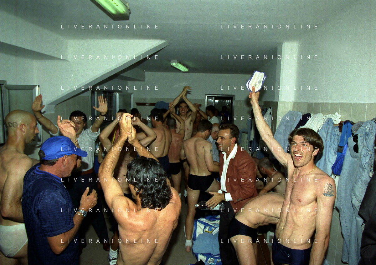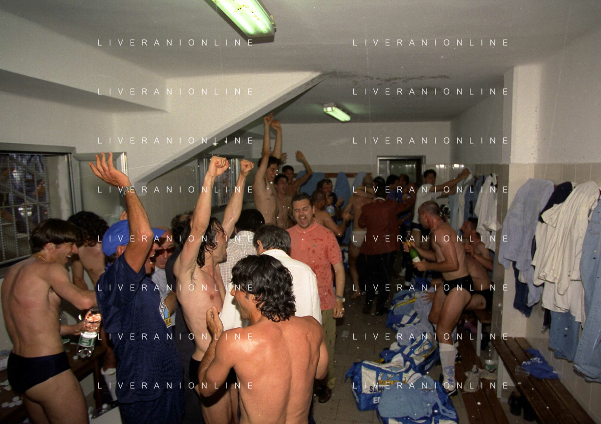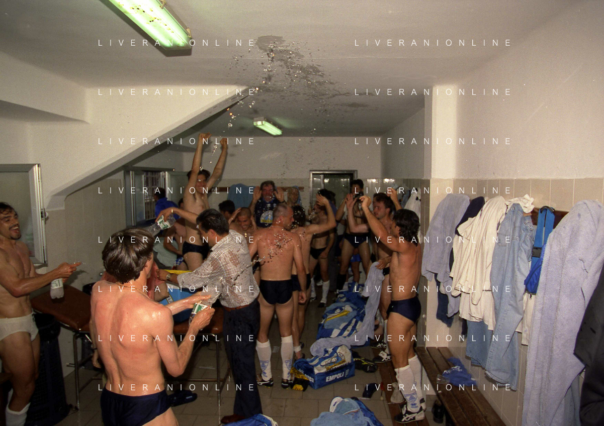 22-06-1997 CREMONA CAMPIONATO DI CALCIO SERIE B CREMONESE EMPOLI 0-1 PROMOSSO EMPOLI CALCIO IN SERIE A NELLA FOTO I GIOCATORI DELL'EMPOLI FESTEGGIANO LA PROMOZIONE IN SERIE A AG ALDO LIVERANI SAS