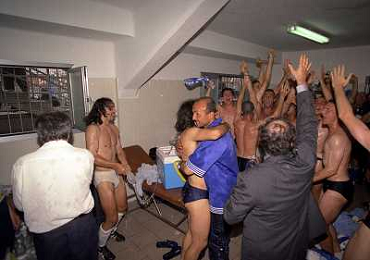 22-06-1997 CREMONA CAMPIONATO DI CALCIO SERIE B CREMONESE EMPOLI 0-1 PROMOSSO EMPOLI CALCIO IN SERIE A NELLA FOTO FABRIZIO CORSI PRESIDENTE EMPOLI CON LUCIANO SPALLETTI AG ALDO LIVERANI SAS