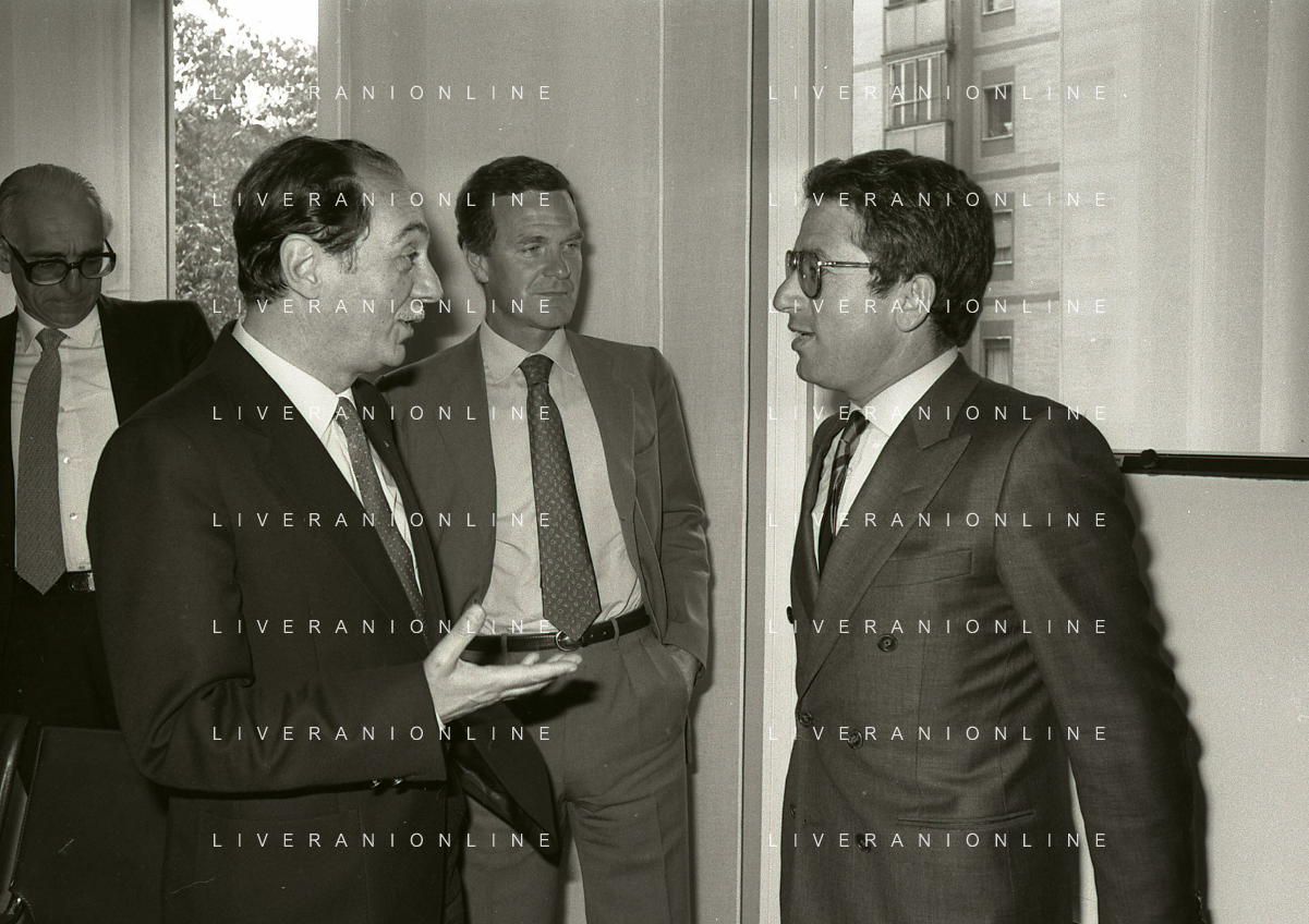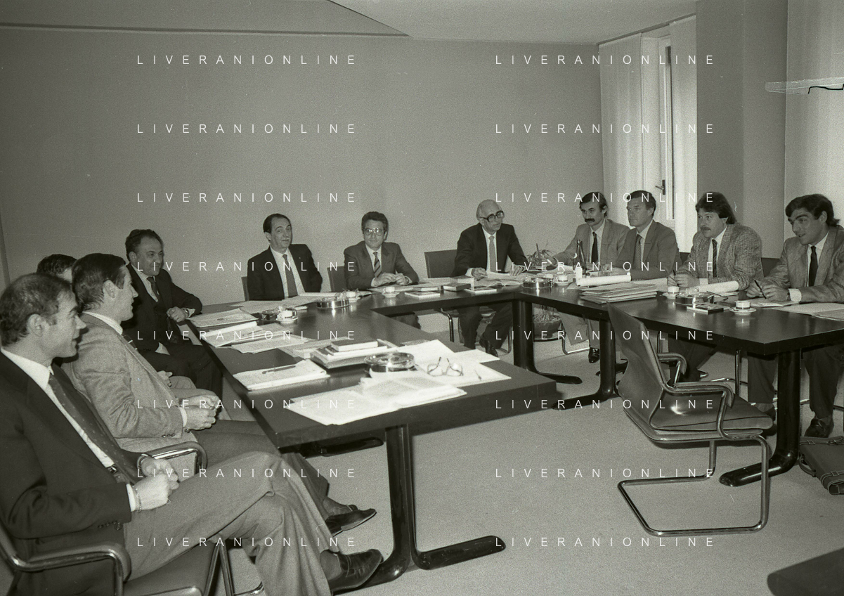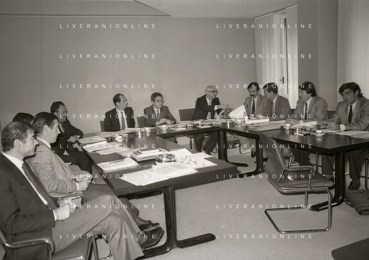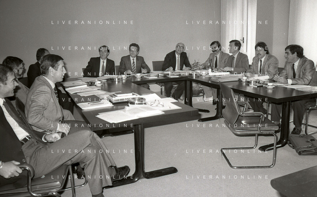 1984 MILANO VIA FILIPPETTI LEGA CALCIO INCONTRO TRA LE SOCIETA DI CALCIO E ASSOCIAZIONE CALCIATORI NELLA FOTO SEGIO CAMPANA E ANTONIO MATARRESE AG ALDO LIVERANI SAS