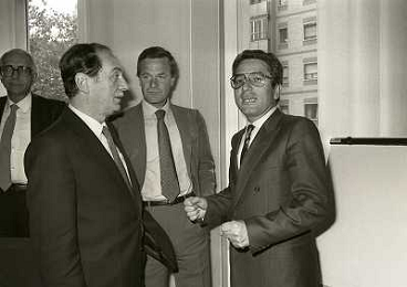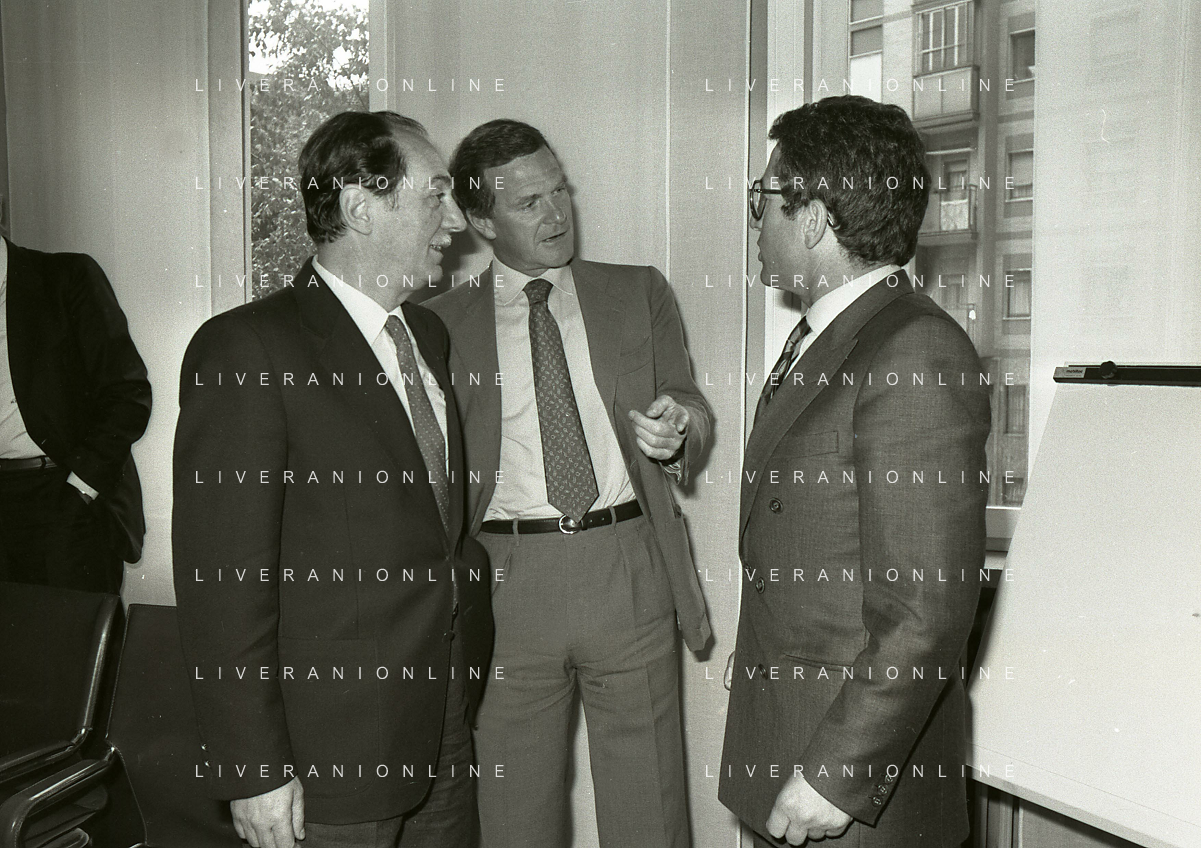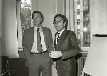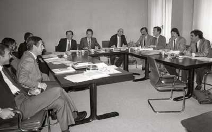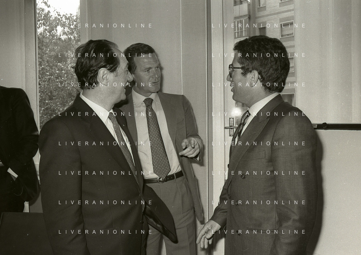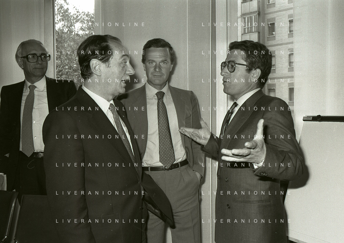 1984 MILANO VIA FILIPPETTI LEGA CALCIO INCONTRO TRA LE SOCIETA DI CALCIO E ASSOCIAZIONE CALCIATORI NELLA FOTO SEGIO CAMPANA E ANTONIO MATARRESE AG ALDO LIVERANI SAS
