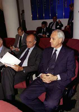 1999 MILANO RIUNIONE DEI PRESIDENTI DI SERIE A E B IN LEGA CALCIO NELLA FOTO ENRICO MANTOVANI PRESIDENTE SAMPDORIA CALCIO AG ALDO LIVERANI SAS