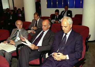 1999 MILANO RIUNIONE DEI PRESIDENTI DI SERIE A E B IN LEGA CALCIO NELLA FOTO PIETRO SCIBILIA PRESIDENTE PESCARA CALCIO AG ALDO LIVERANI SAS