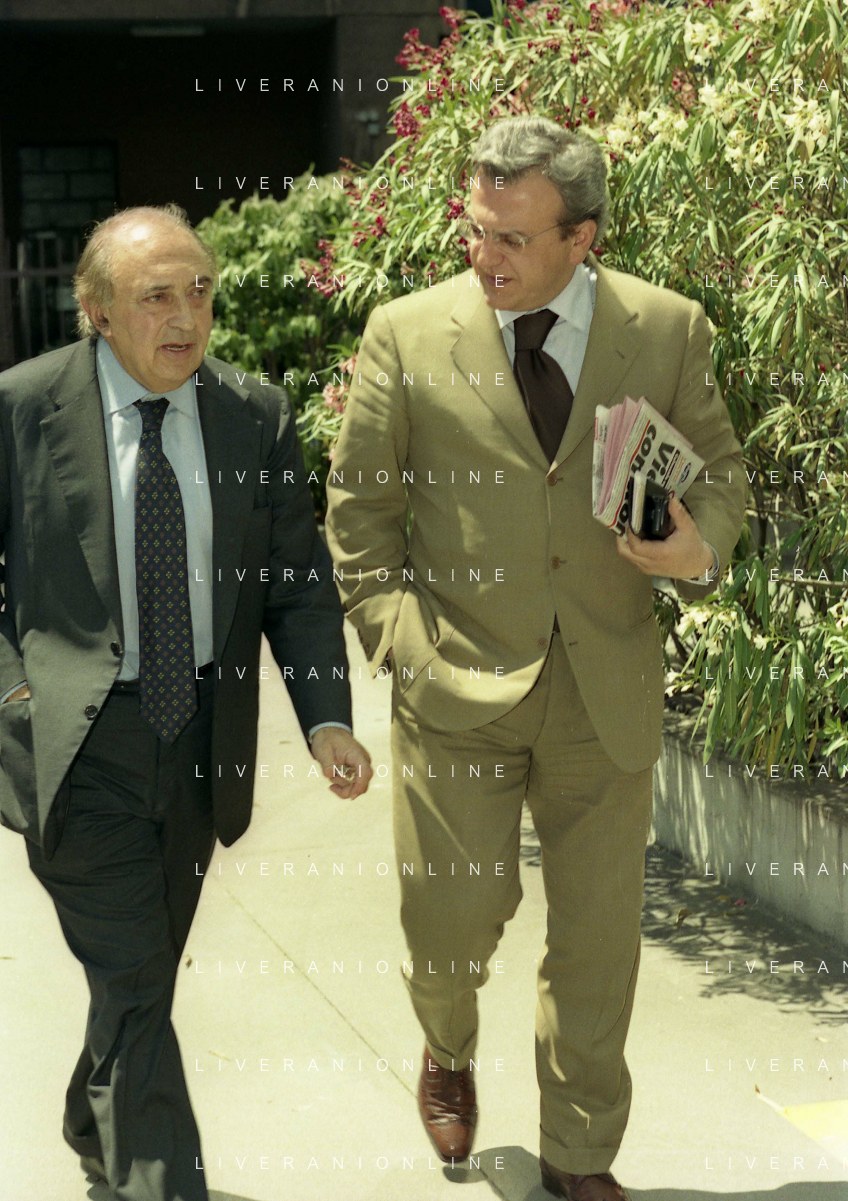 1999 MILANO RIUNIONE DEI PRESIDENTI DI SERIE A E B IN LEGA CALCIO NELLA FOTO CORRADO FERLAINO PRESIDENTE NAPOLI CALCIO E ANIELLO ALIBERTI PRESIDENTE SALERNITANA CALCIO AG ALDO LIVERANI SAS
