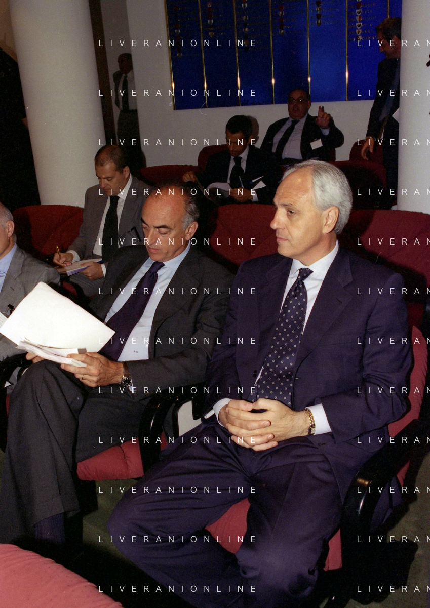 1999 MILANO RIUNIONE DEI PRESIDENTI DI SERIE A E B IN LEGA CALCIO NELLA FOTO LILLO FOTI PRESIDENTE REGGINA CALCIO AG ALDO LIVERANI SAS