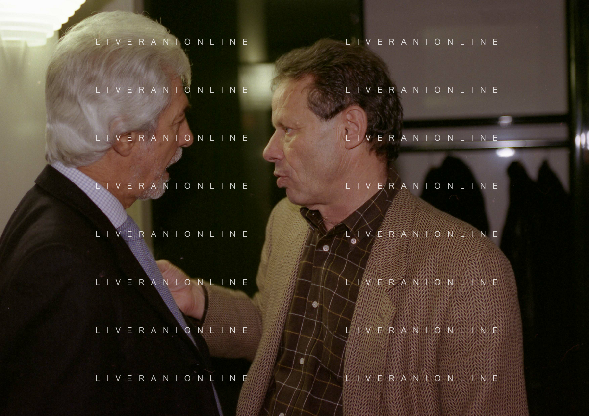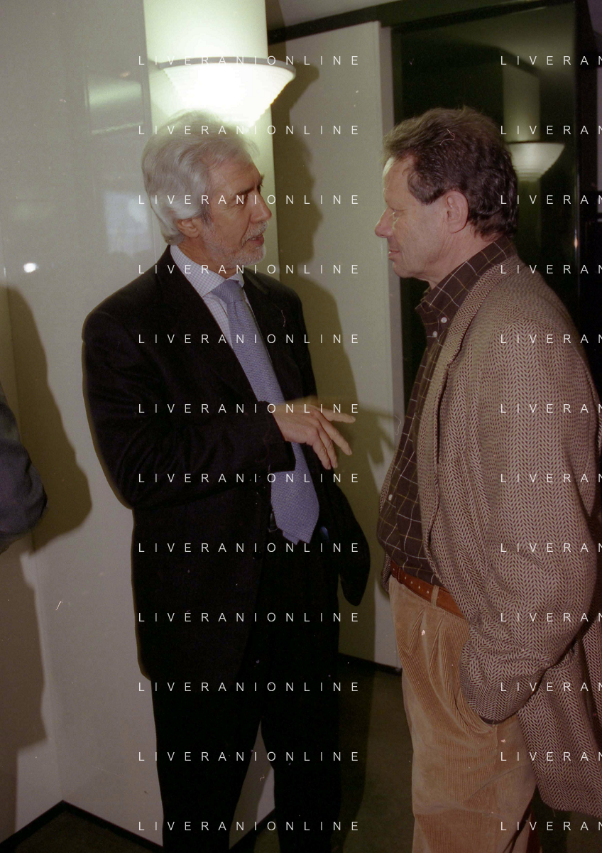 1999 MILANO RIUNIONE DEI PRESIDENTI DI SERIE A E B IN LEGA CALCIO NELLA FOTO GIAN BATTISTA PASTORELLO CON MAURIZIO ZAMPARINI AG ALDO LIVERANI SAS