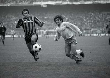 02-12-1984 MILANO-CAMPIONATO DI CALCIO SERIE A INTER NAPOLI 2-1 NELLA FOTO GIUSEPPE BARESI E DIEGO MARADONA AG ALDO LIVERANI SAS