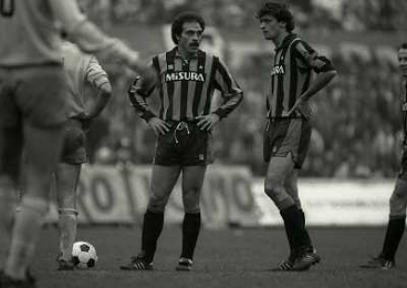 02-12-1984 MILANO-CAMPIONATO DI CALCIO SERIE A INTER NAPOLI 2-1 NELLA FOTO KARL HEINZ RUMMENIGGE E CAMILLO CEDRATI AG ALDO LIVERANI SAS