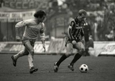 02-12-1984 MILANO-CAMPIONATO DI CALCIO SERIE A INTER NAPOLI 2-1 NELLA FOTO GIUSEPPE BRUSCOLOTTI E KARL HEINZ RUMMENIGGE AG ALDO LIVERANI SAS