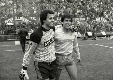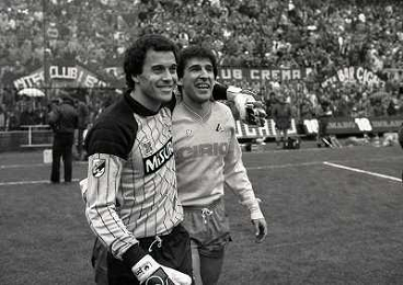 02-12-1984 MILANO-CAMPIONATO DI CALCIO SERIE A INTER NAPOLI 2-1 NELLA FOTO ANGELO RECCHI CON SALVATORE BAGNI AG ALDO LIVERANI SAS
