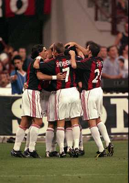 27-08-2000 MILANO 10 TROFEO LUIGI BERLUSCONI MILAN JUVENTUS NELLA FOTO ABBRACCI GIOCATORI MILAN AG ALDO LIVERANI SAS