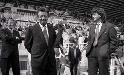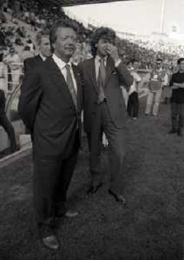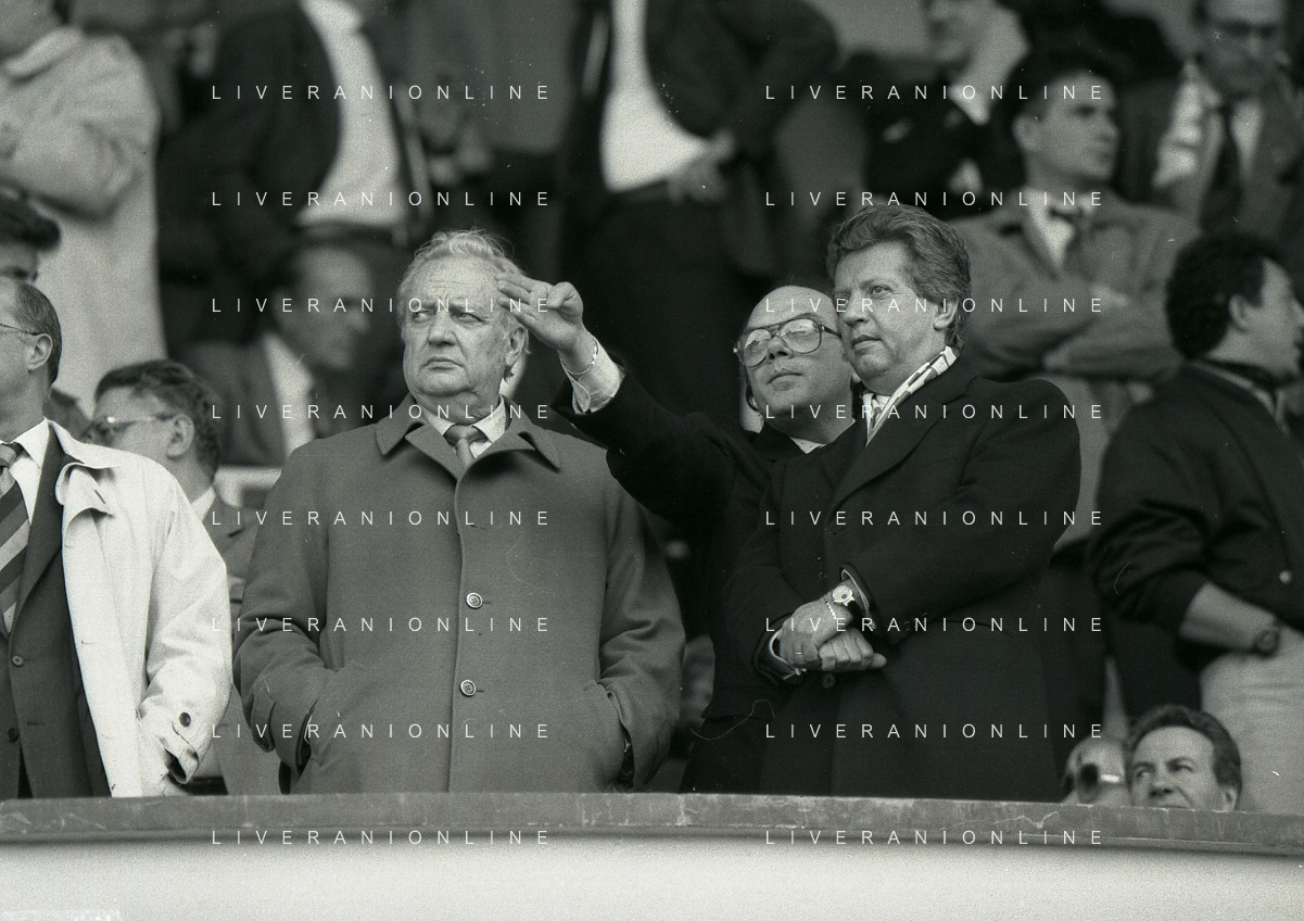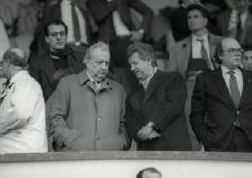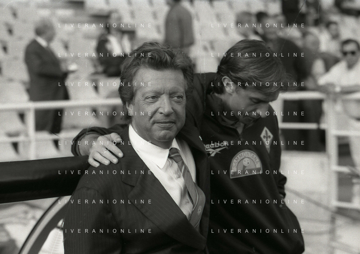 RETROSPETTIVA VITTORIO CECCHI GORI PRESIDENTE FIORENTINA CALCIO NELLA FOTO VITTORIO CECCHI GORI PRESIDENTE FIORENTINA CALCIO NELL'ANNO 1995-1996 CON GIANCARLO ANTOGNONI AG ALDO LIVERANI SAS