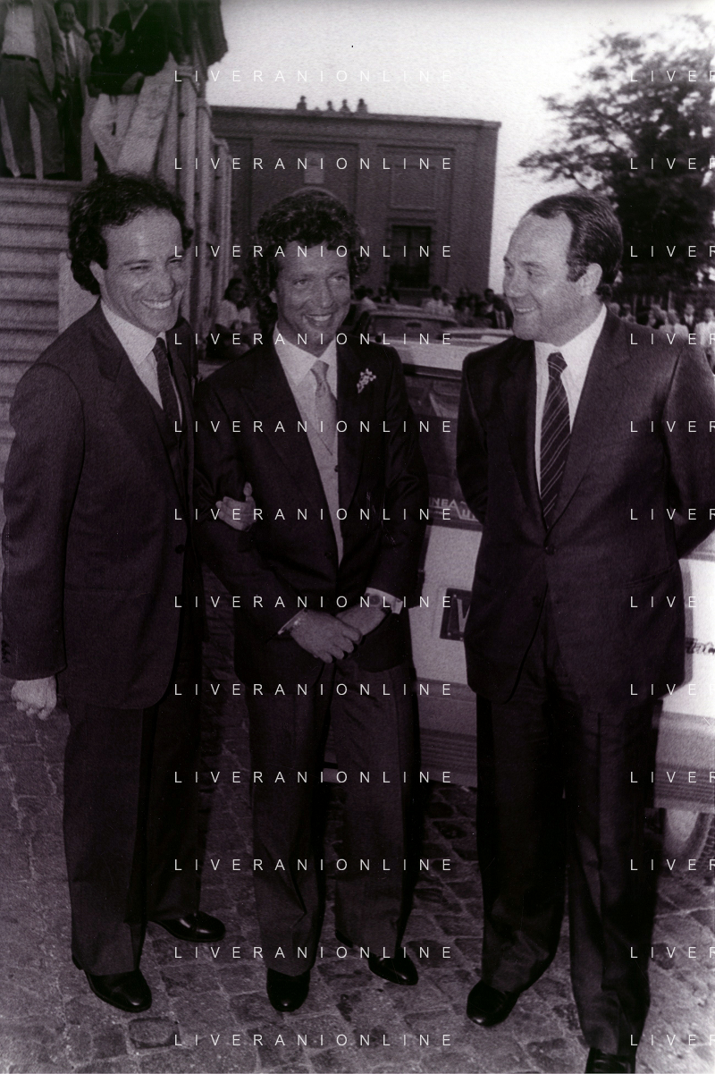 RETROSPETTIVA VITTORIO CECCHI GORI IMPRENDITORE -POLITICO E PRODUTTORE CINEMATOGRAFICO NELLA FOTO VITTORIO CECCHI GORI CON ENRICO MONTESANO E CARLO VERDONE AG ALDO LIVERANI SAS
