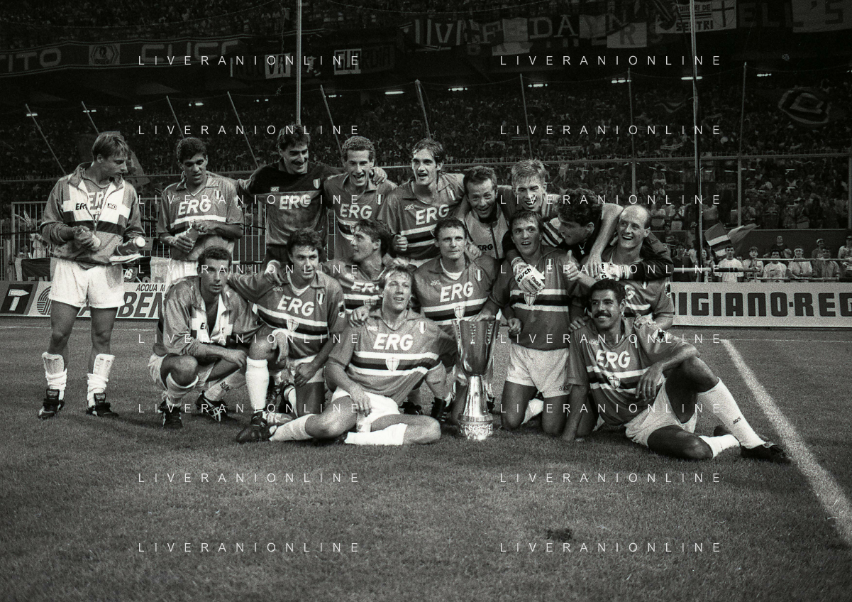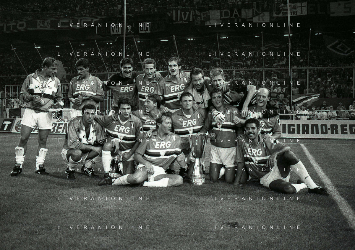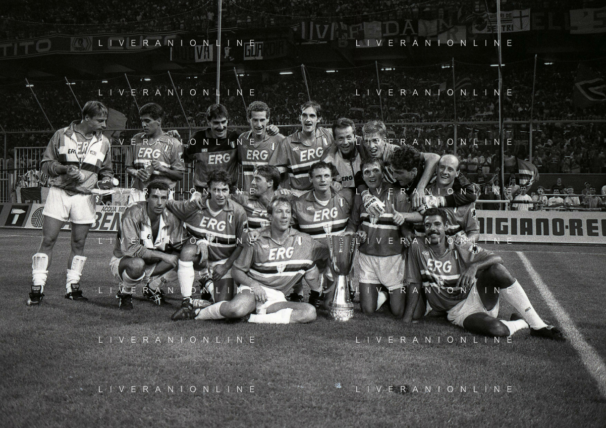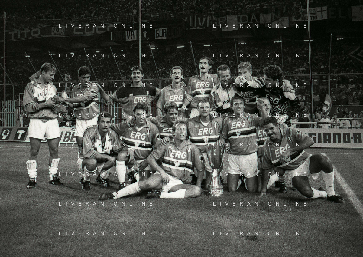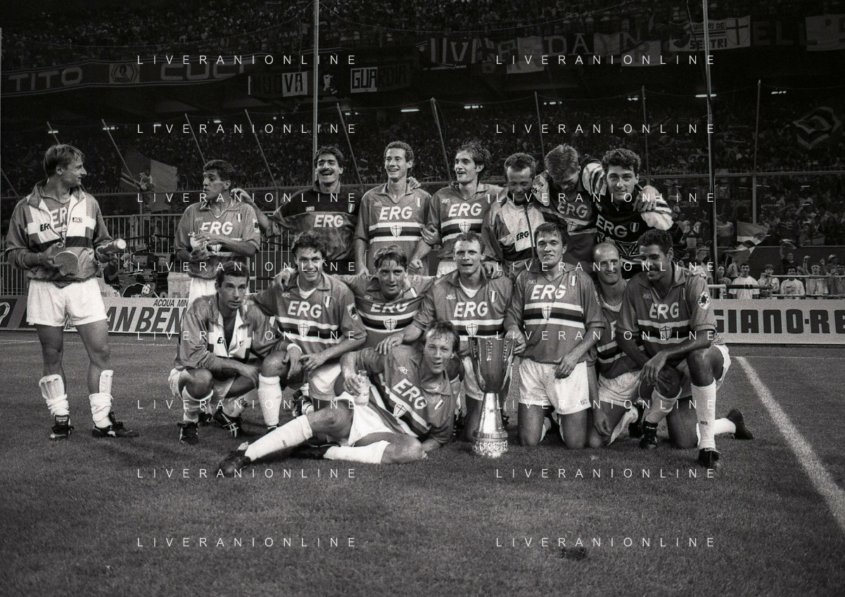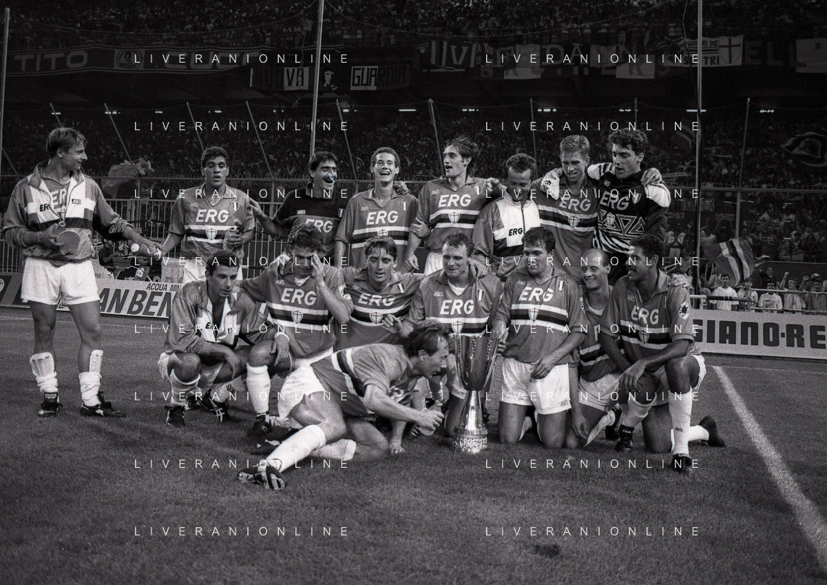 24-08-1991 GENOVA-SUPERCOPPA ITALIANA FINALE SAMPDORIA ROMA 1-0 NELLA FOTO LA FORMAZIONE DELLA SAMPDORIA VINCE LA SUPECOPPA ITALIANA AG ALDO LIVERANI SAS