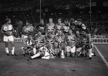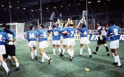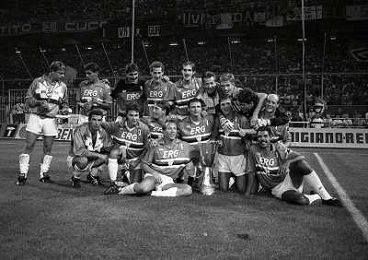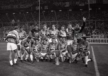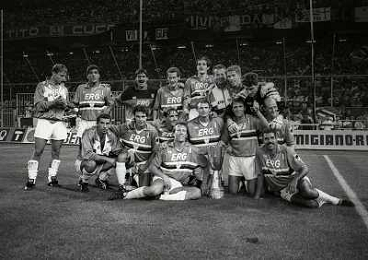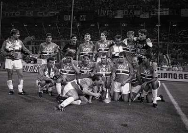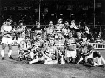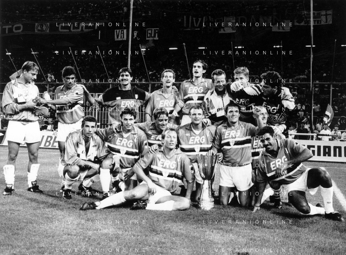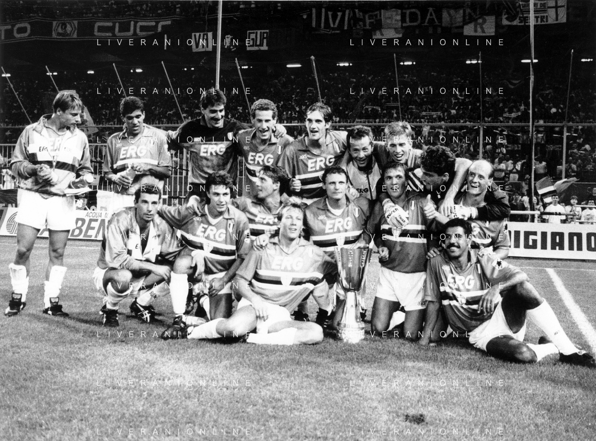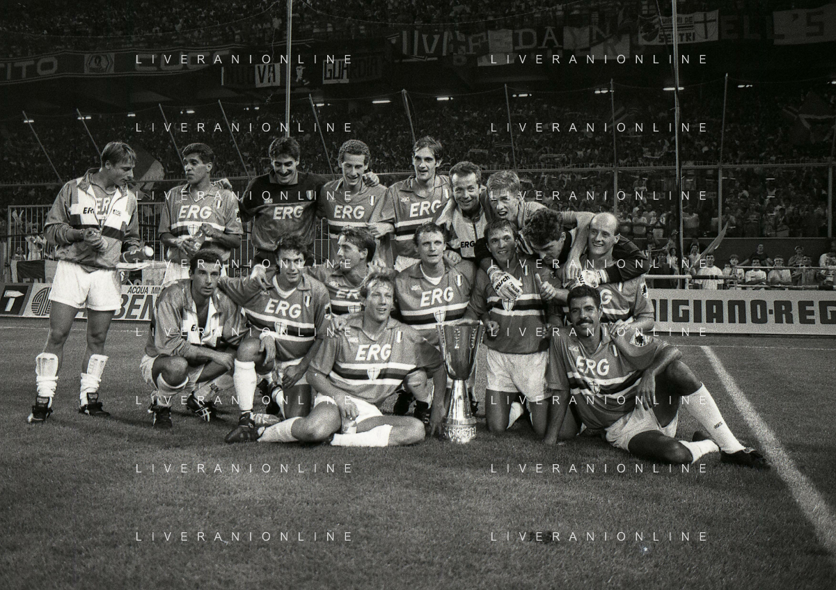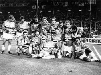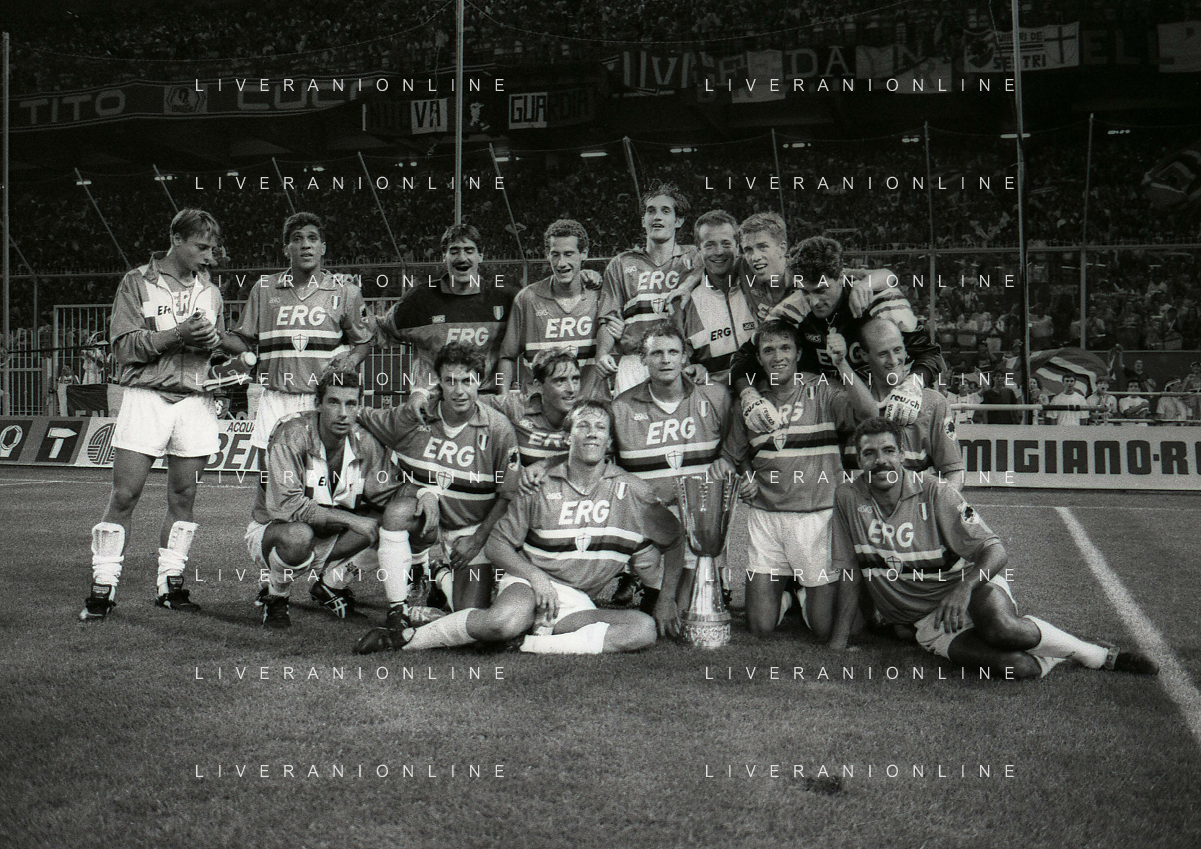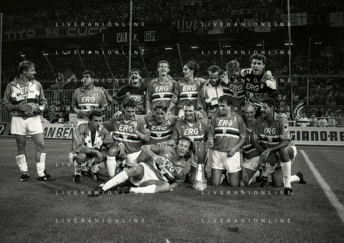24-08-1991 GENOVA-SUPERCOPPA ITALIANA FINALE SAMPDORIA ROMA 1-0 NELLA FOTO LA FORMAZIONE DELLA SAMPDORIA VINCE LA SUPECOPPA ITALIANA AG ALDO LIVERANI SAS