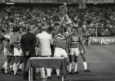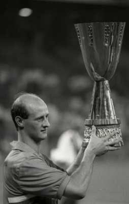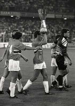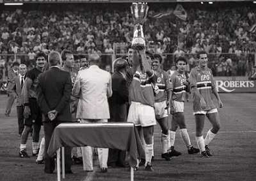24-08-1991 GENOVA-SUPERCOPPA ITALIANA FINALE SAMPDORIA ROMA 1-0 NELLA FOTO ATTILIO LOMBARDO CON LA SUPERCOPPA ITALIANA AG ALDO LIVERANI SAS