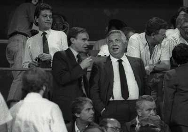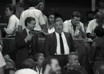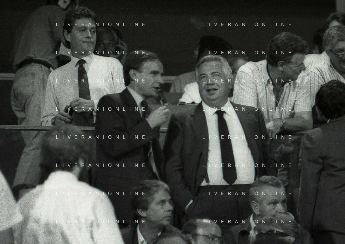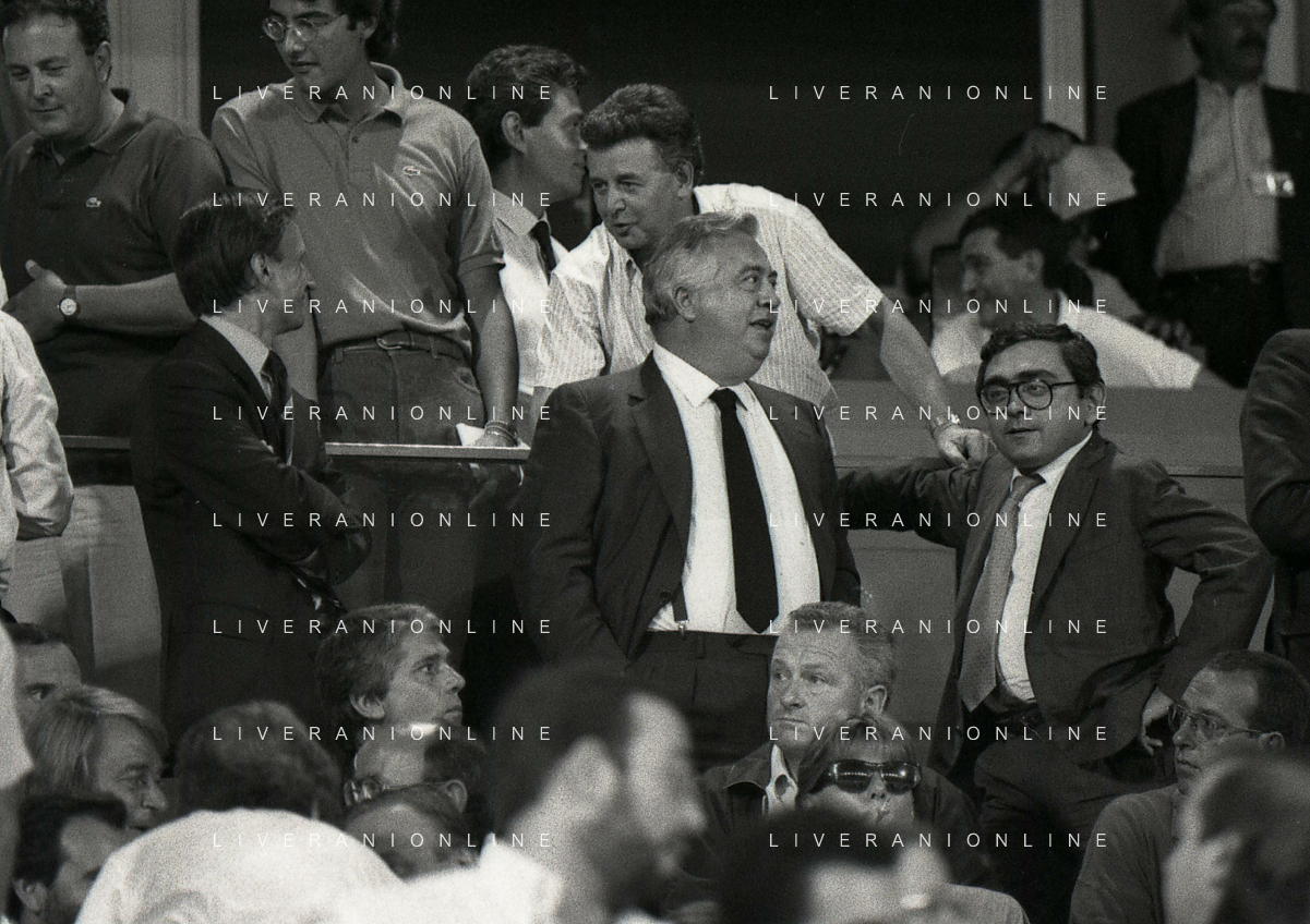 24-08-1991 GENOVA-SUPERCOPPA ITALIANA FINALE SAMPDORIA ROMA 1-0 NELLA FOTO GIANNI PETRUCCI CON IL PRESIDENTE DELLA ROMA GIUSEPPE CIARRAPICO AG ALDO LIVERANI SAS