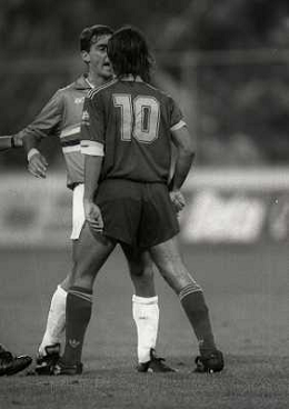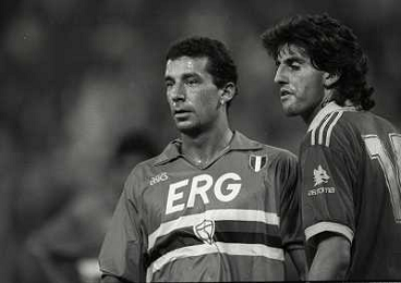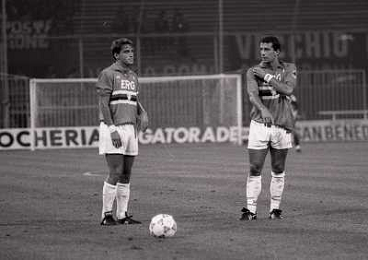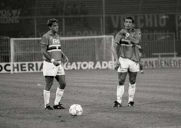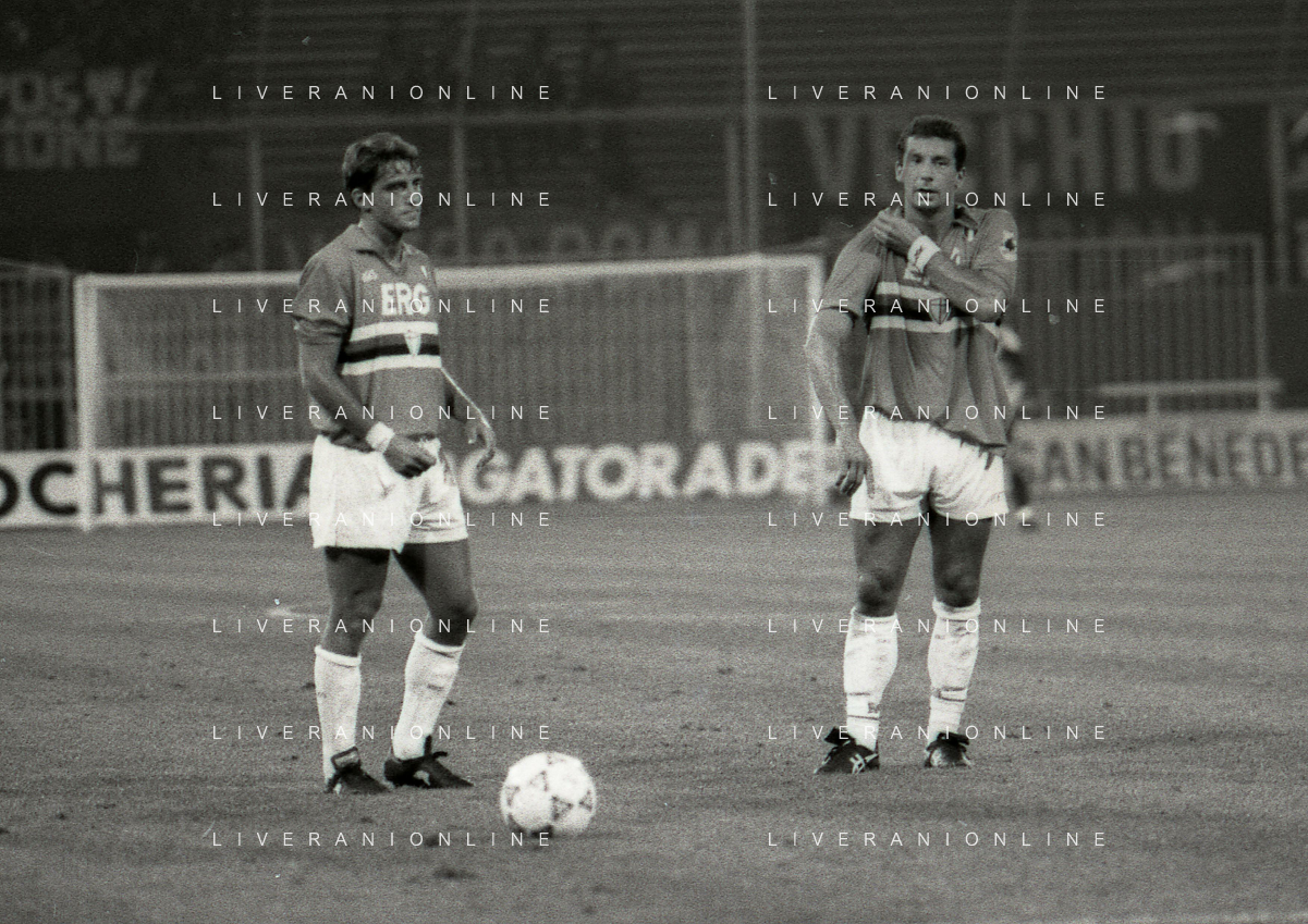 24-08-1991 GENOVA-SUPERCOPPA ITALIANA FINALE SAMPDORIA ROMA 1-0 NELLA FOTO MARCO DE MARCHI E GIANLUCA VIALLI AG ALDO LIVERANI SAS