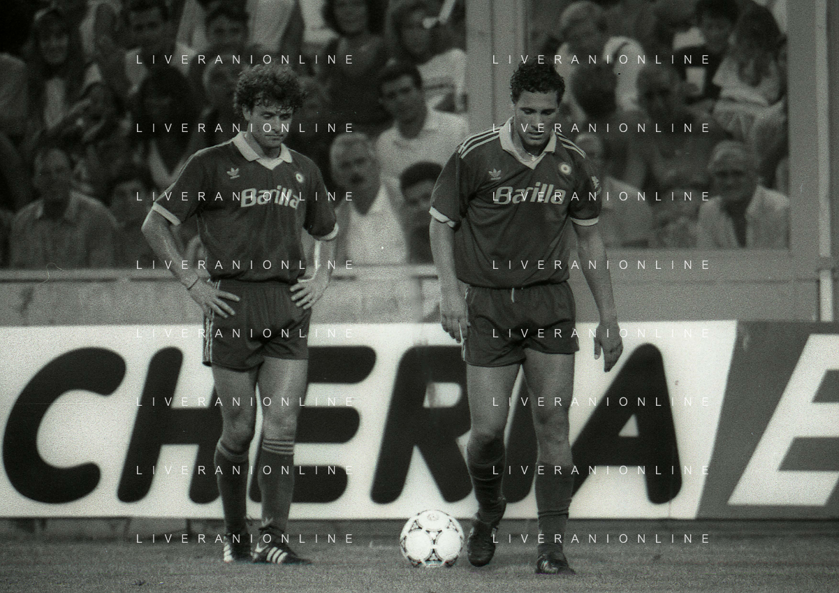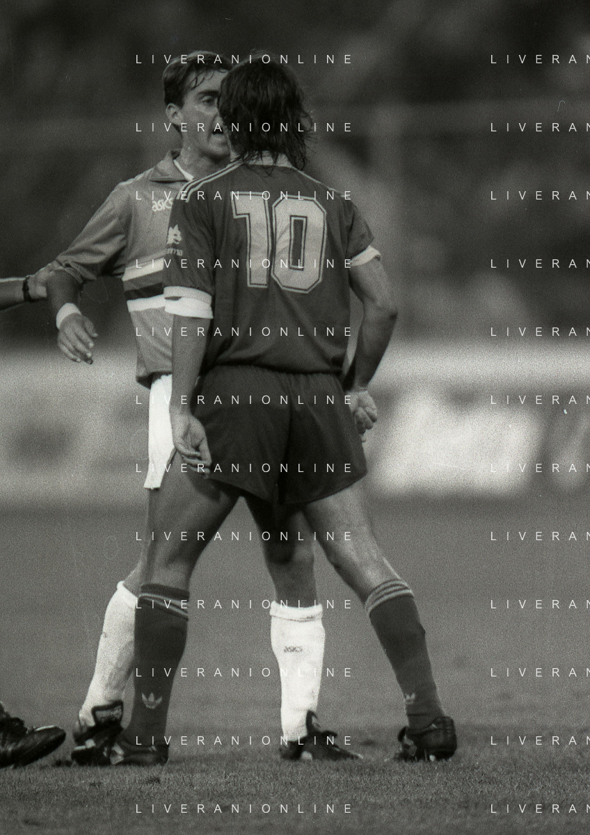24-08-1991 GENOVA-SUPERCOPPA ITALIANA FINALE SAMPDORIA ROMA 1-0 NELLA FOTO AMEDEO CARBONI E ROBERTO MUZZI AG ALDO LIVERANI SAS