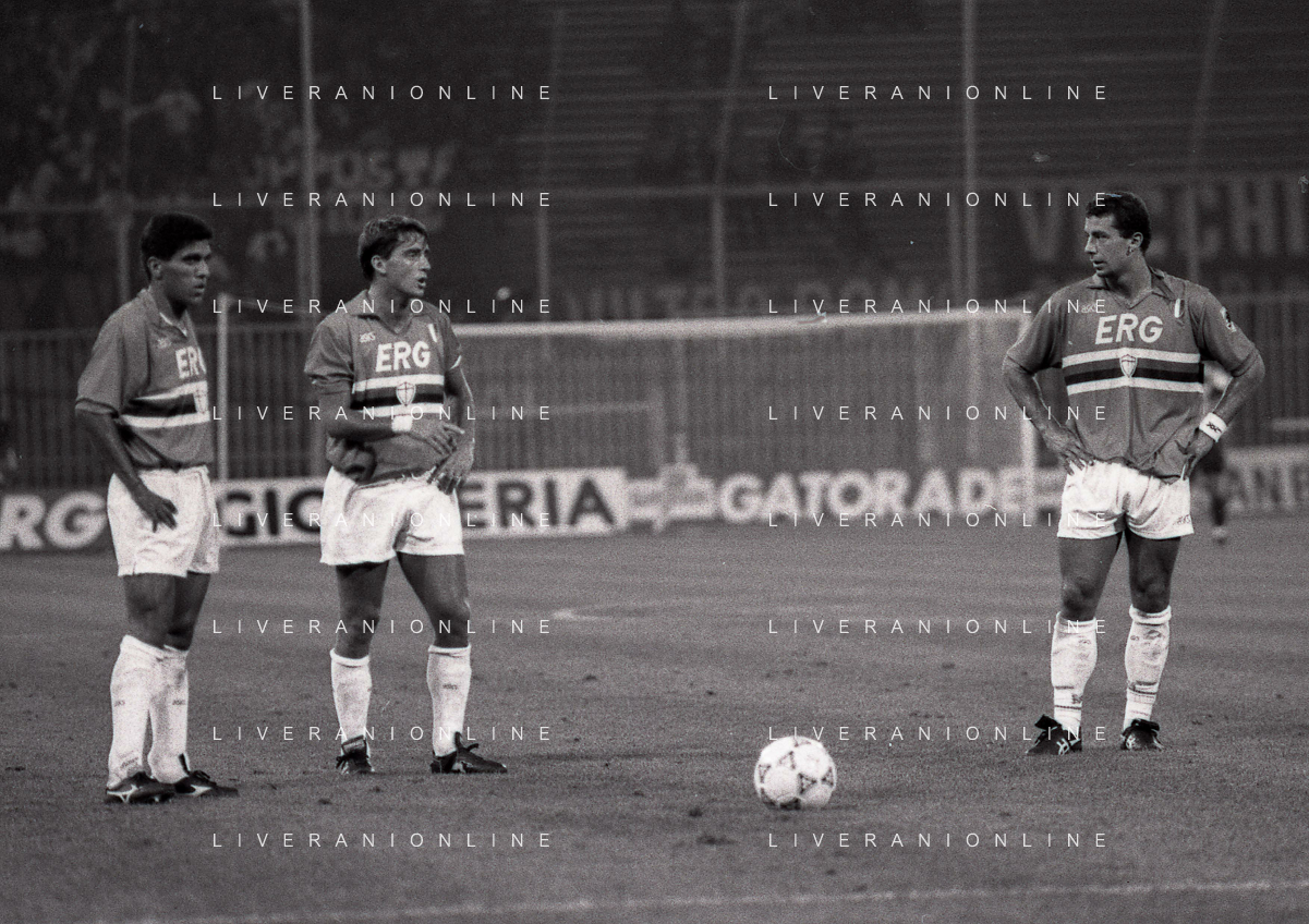 24-08-1991 GENOVA-SUPERCOPPA ITALIANA FINALE SAMPDORIA ROMA 1-0 NELLA FOTO TIGANI-LUCIANO NIZZOLA E PAOLO MANTOVANI AG ALDO LIVERANI SAS