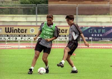 1999 KAPFENBERG RITIRO ESTIVO PRECAMPIONATO ROMA CALCIO NELLA FOTO FRANCESCO TOTTI CON VINCENZO MONTELLA AG ALDO LIVERANI SAS