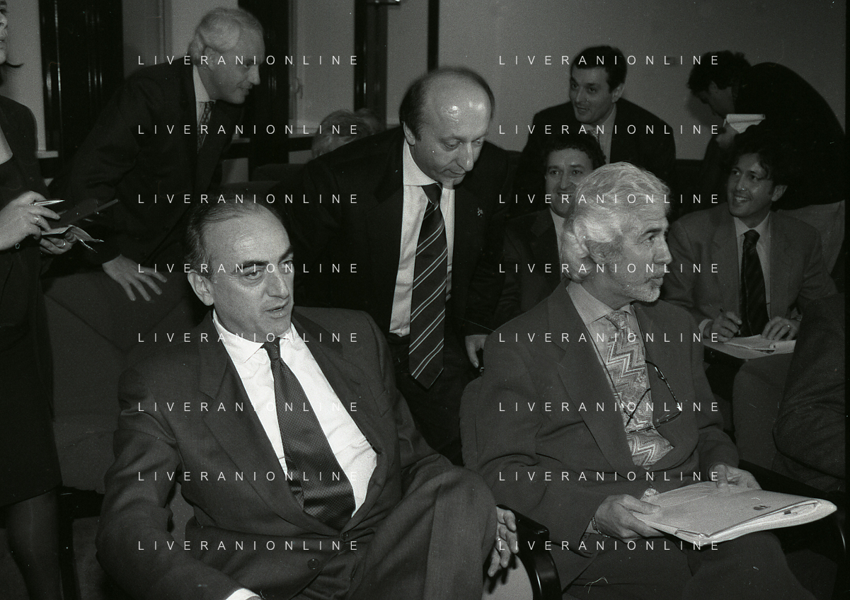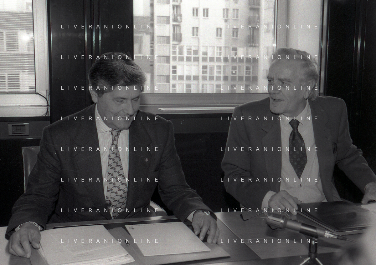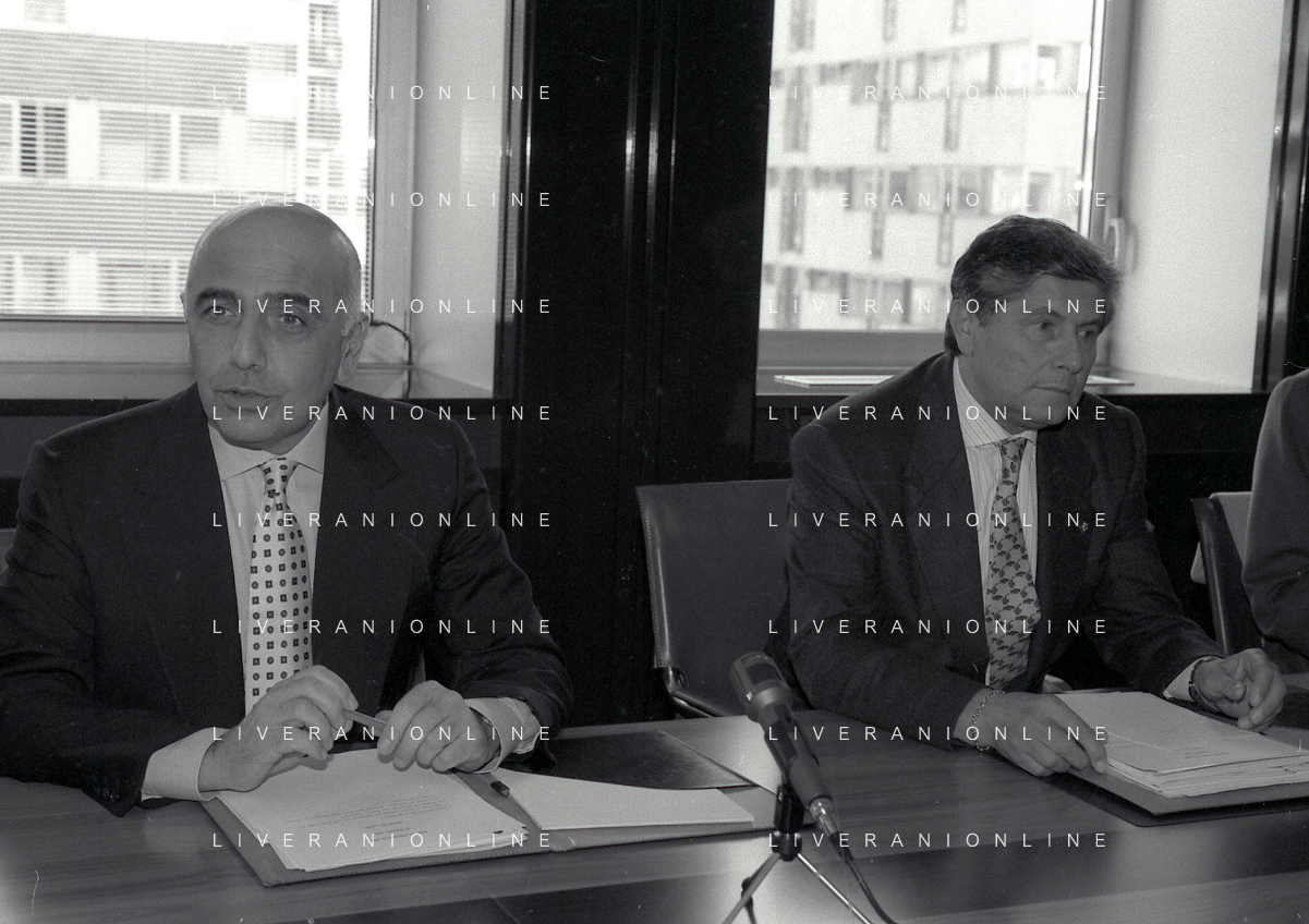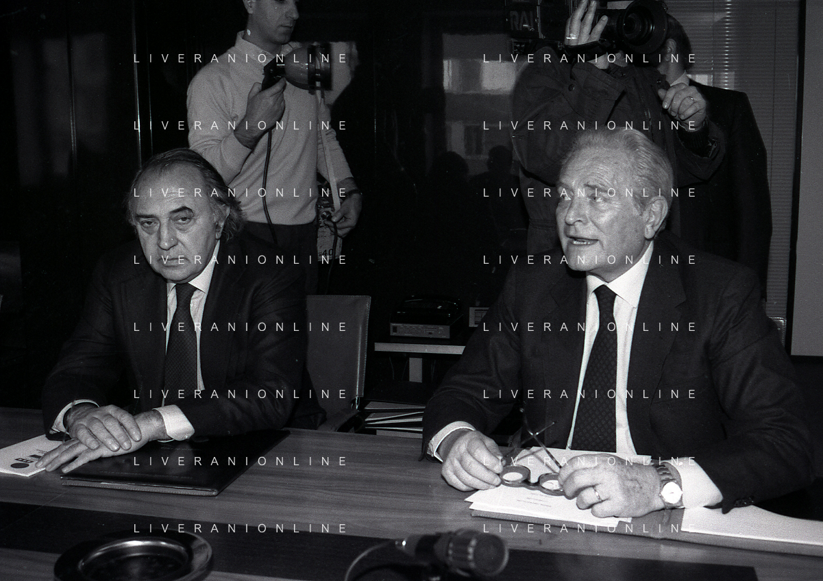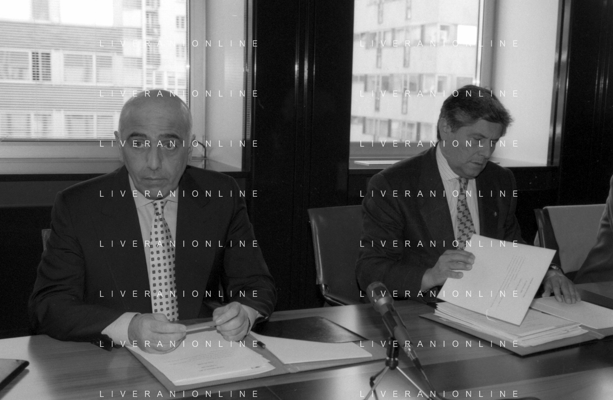 Neg- RETROSPETTIVA ADRIANO GALLIANI , Dirigente Sportivo Calcio Nella foto ADRIANO GALLIANI, Amministratore Delegato MILAN CON LUCIANO NIZZOLA, ALLA RIUNIONE DEI PRESIDENTI IN LEGA CALCIO A MILANO NELL'ANNO 1995 AG ALDO LIVERANI