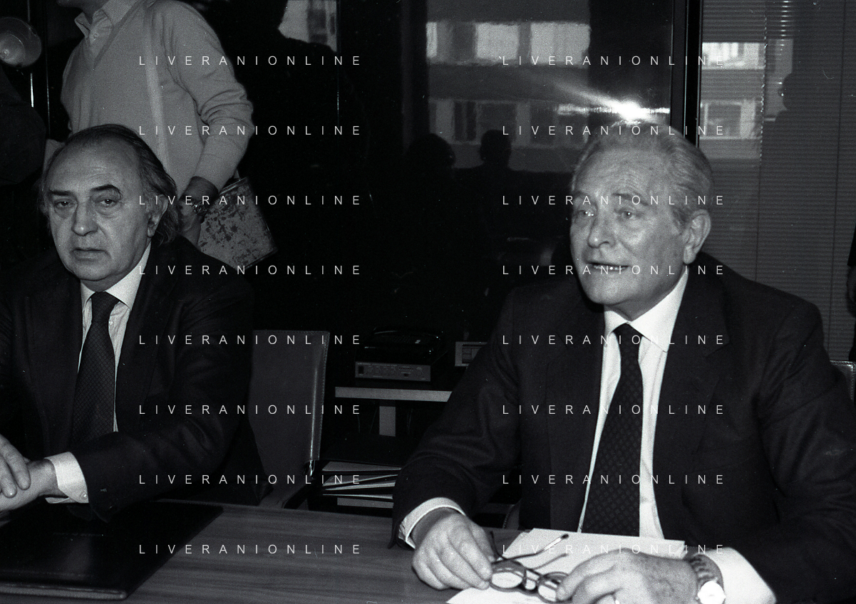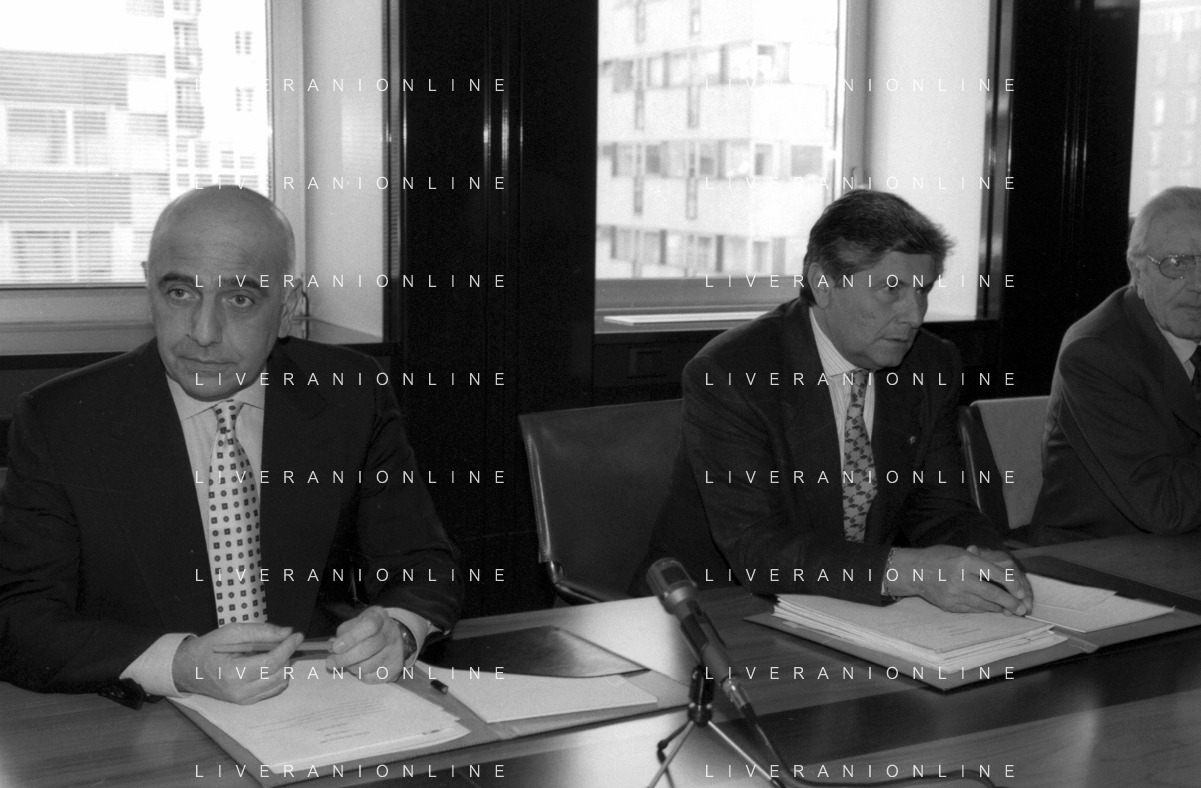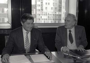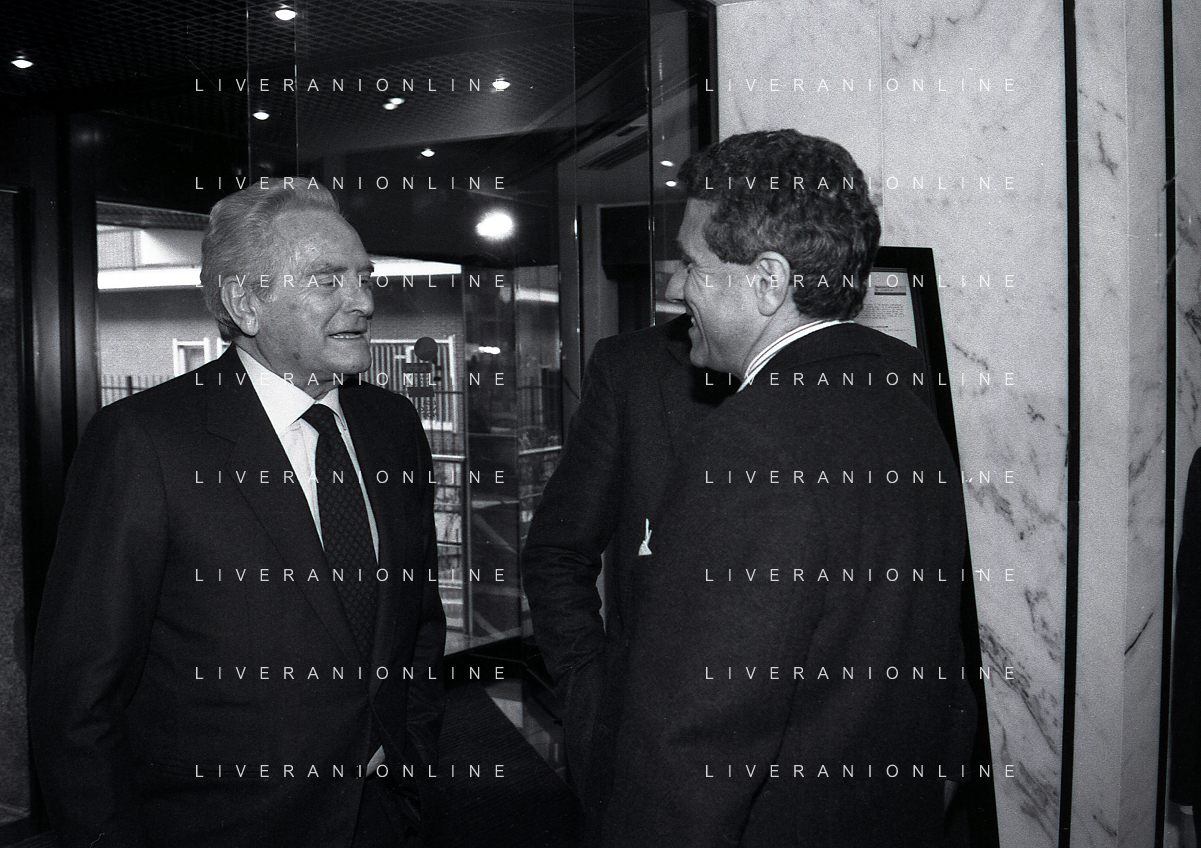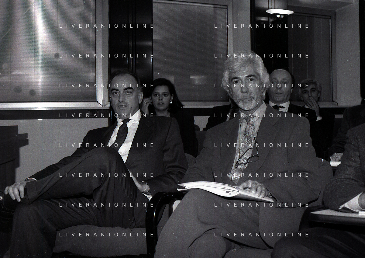 Neg- RETROSPETTIVA ADRIANO GALLIANI , Dirigente Sportivo Calcio Nella foto ADRIANO GALLIANI, Amministratore Delegato MILAN CON LUCIANO NIZZOLA, ALLA RIUNIONE DEI PRESIDENTI IN LEGA CALCIO A MILANO NELL'ANNO 1995 AG ALDO LIVERANI