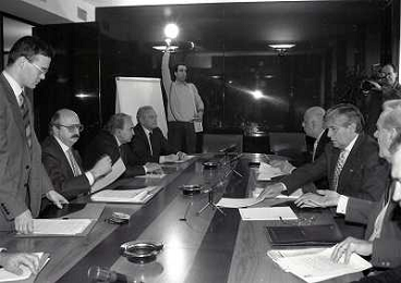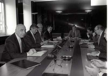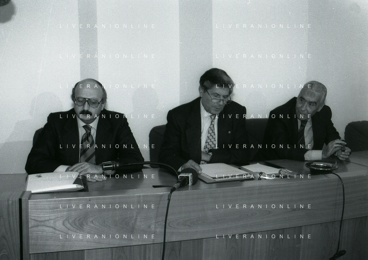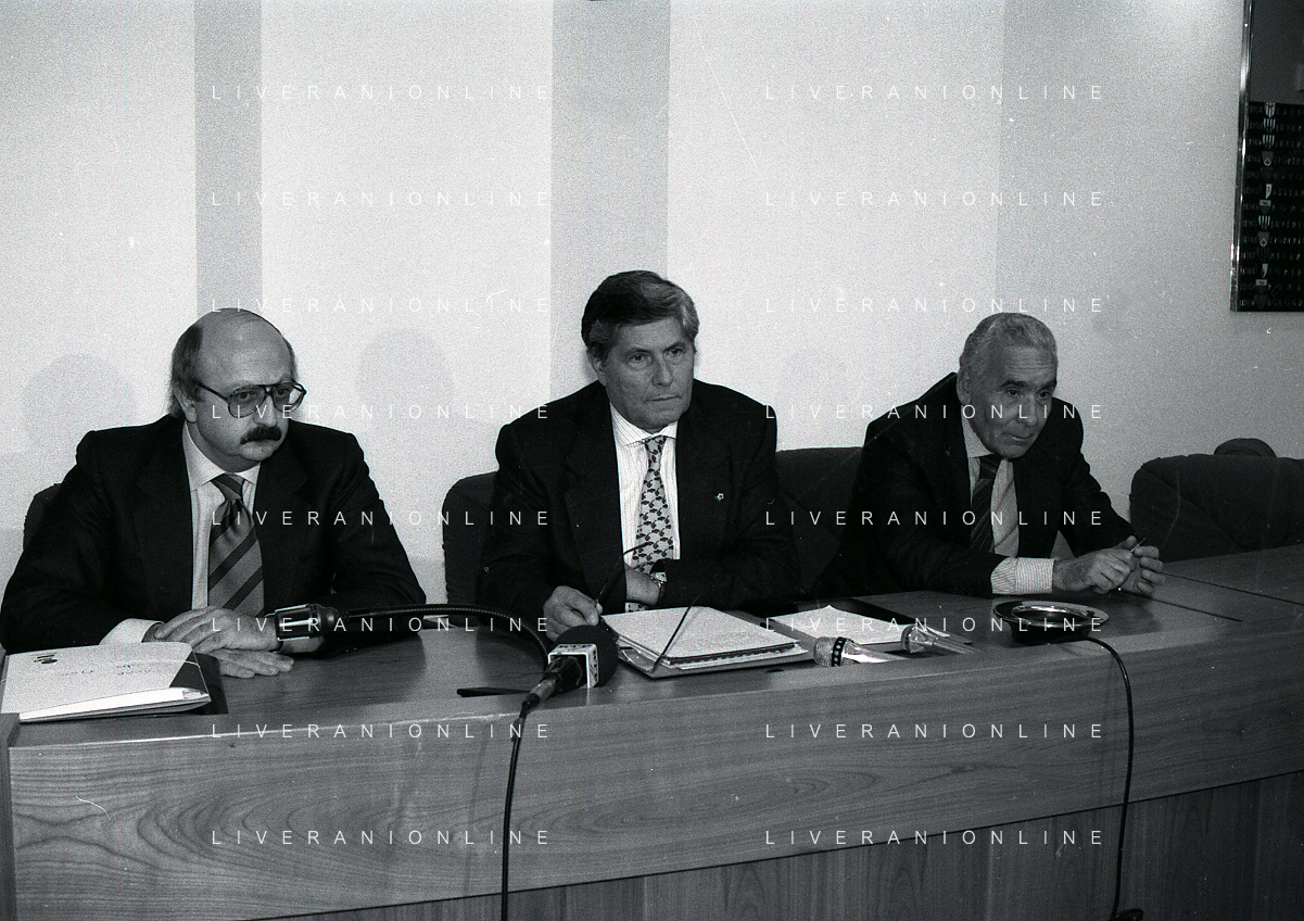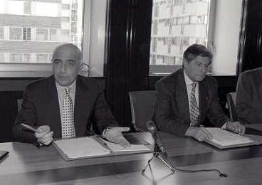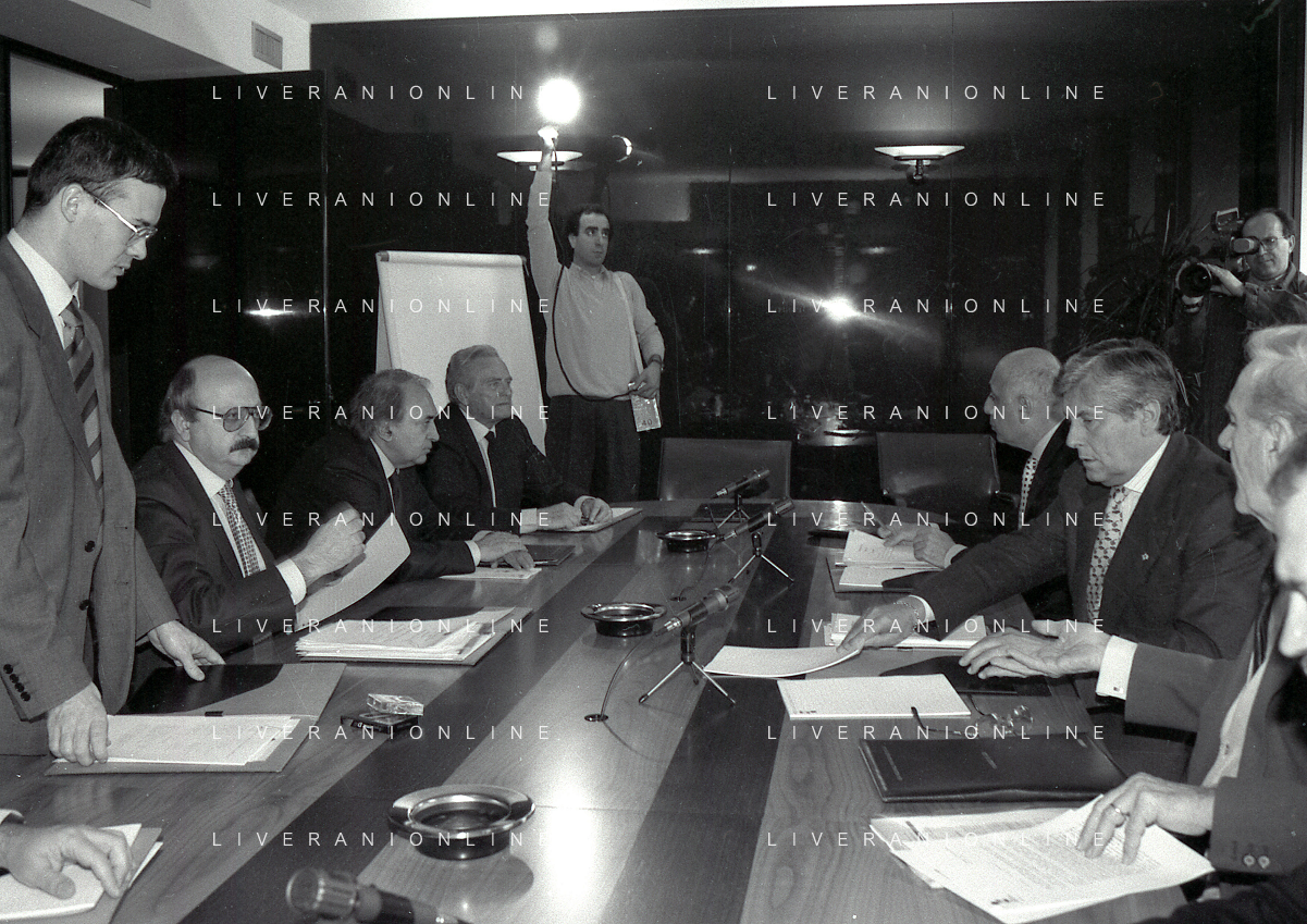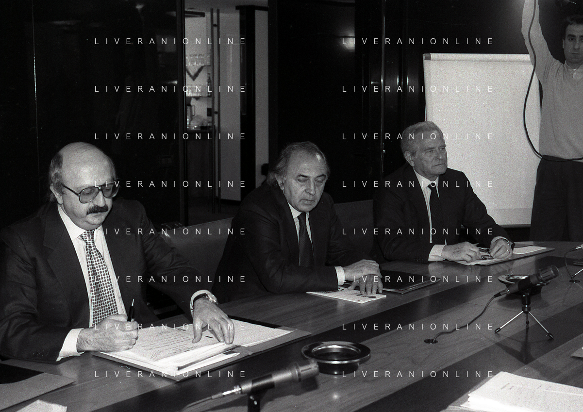 Neg- RETROSPETTIVA ADRIANO GALLIANI , Dirigente Sportivo Calcio Nella foto ADRIANO GALLIANI, Amministratore Delegato MILAN CON LUCIANO NIZZOLA, ALLA RIUNIONE DEI PRESIDENTI IN LEGA CALCIO A MILANO NELL'ANNO 1995 AG ALDO LIVERANI