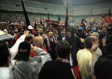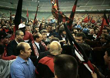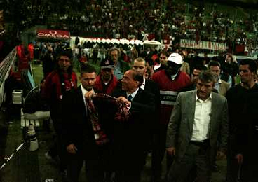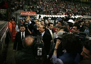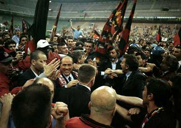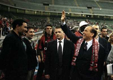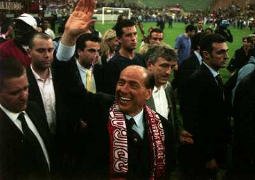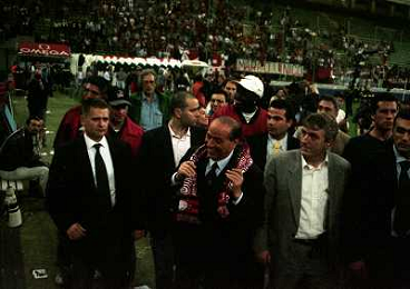 23-05-1999 MILANO STADIO MEAZZA FESTEGGIAMENTI PER LA VITTORIA DEL 16 SCUDETTO DEL MILAN NELLA FOTO SILVIO BERLUSCONI FESTEGGIA CON I TIFOSI AG ALDO LIVERANI SAS
