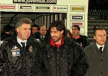 21-11-1999 TORINO-CAMPIONATO DI CALCIO SERIE A JUVENTUS MILAN 3-1 NELLA FOTO CARLO ANCELOTTI ALLENATORE JUVENTUS CON FEDERICO GIUNTI AG ALDO LIVERANI SAS
