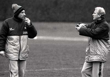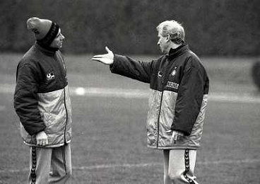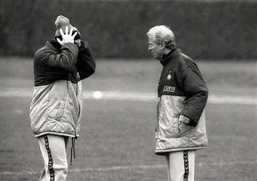 1991-1992 PINETINA ALLENAMENTO INTER NELLA FOTO GIOVANNI TRAPATTONI CON GIAMPIERO MARINI AG ALDO LIVERANI SAS