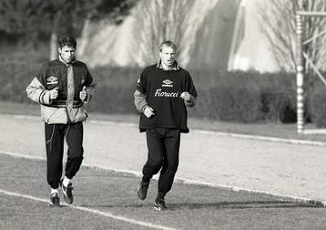 1994-1995 PINETINA ALLENAMENTO INTER NELLA FOTO DARKO PANCEV E DENNIS BERGKAMP AG ALDO LIVERANI SAS