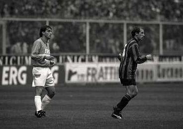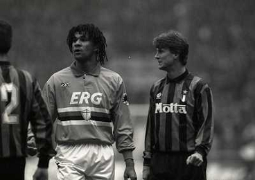 31-10-1993 GENOVA-CAMPIONATO DI CALCIO SERIE A SAMPDORIA MILAN 3-2 NELLA FOTO ROBERTO MANCINI E FRANCO BARESI AG ALDO LIVERANI SAS