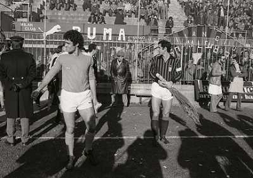 12-12-1979 MILANO-CAMPIONATO DI CALCIO SERIE A MILAN NAPOLI 1-2 NELLA FOTO LUIS VINICIO CON MASSIMO GIACOMINI AG ALDO LIVERANI SAS