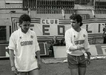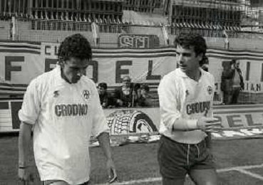 09-04-1989 GENOVA-CAMPIONATO DI CALCIO SERIE A SAMPDORIA FIORENTINA 1-2 NELLA FOTO ROBERTO BAGGIO E STEFANO BORGONOVO AG ALDO LIVERANI SAS