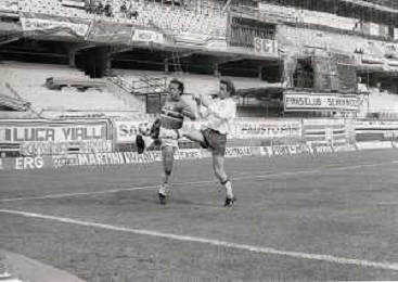 09-04-1989 GENOVA-CAMPIONATO DI CALCIO SERIE A SAMPDORIA FIORENTINA 1-2 NELLA FOTO VICTOR MUNOZ E STEFANO BORGONOVO AG ALDO LIVERANI SAS