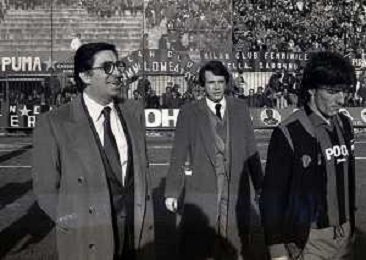 03-01-1982 MILANO CAMPIONATO DI CALCIO SERIE A MILAN CAGLIARI 1-0 NELLA FOTO JOSE ALTAFINI CON ROBERTO ANTONELLI E MORAZZONI PRESIDENTE MILAN AL PREMIO INTREPIDO AG ALDO LIVERANI SAS