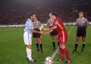 01-11-1997 ROMA CAMPIONATO DI SERIE A ROMA LAZIO 1-3 NELLA FOTO VINCENT CANDELA E FRANCESCO TOTTI AG ALDO LIVERANI SAS