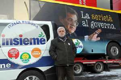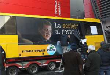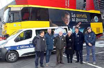 28-02-2018 IMOLA- Autodromo Enzo e Dino Ferrari di Imola Arrivato il Pulman di Romano Prodi fermo da 22 anni nel 1996 vinse le elezioni ora Serse Soverini assieme a Giulio Santagata in Lista Civica Italia Europa Insieme in Autodromo negato il giro in Pulman FOTO GIANNI SANNA.AG ALDO LIVERANI SAS