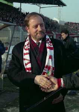 05-01-1997 VICENZA-CAMPIONATO DI CALCIO SERIE A VICENZA BOLOGNA 2-0 NELLA FOTO PIERALDO DALLE CARBONARE PRESIDENTE VICENZA CALCIO CON RENZO ULIVIERI ALLENATORE BOLOGNA CALCIO AG ALDO LIVERANI SAS