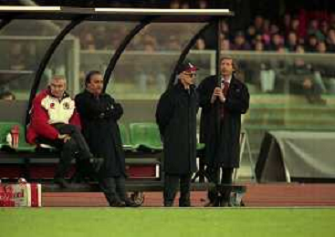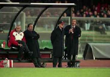 26-01-1997 VERONA-CAMPIONATO DI CALCIO SERIE A VERONA MILAN 3-1 NELLA FOTO ARRIGO SACCHI ALLENATORE MILAN CON PIETRO CARMIGNANI AG ALDO LIVERANI SAS