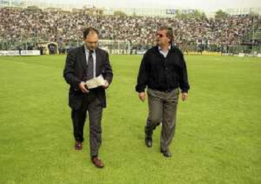03-05-1998 BERGAMO-CAMPIONATO DI CALCIO SERIE A ATALANTA BARI 2-0 NELLA FOTO EUGENIO FASCETTI CON PIERO DORONZO AG ALDO LIVERANI SAS